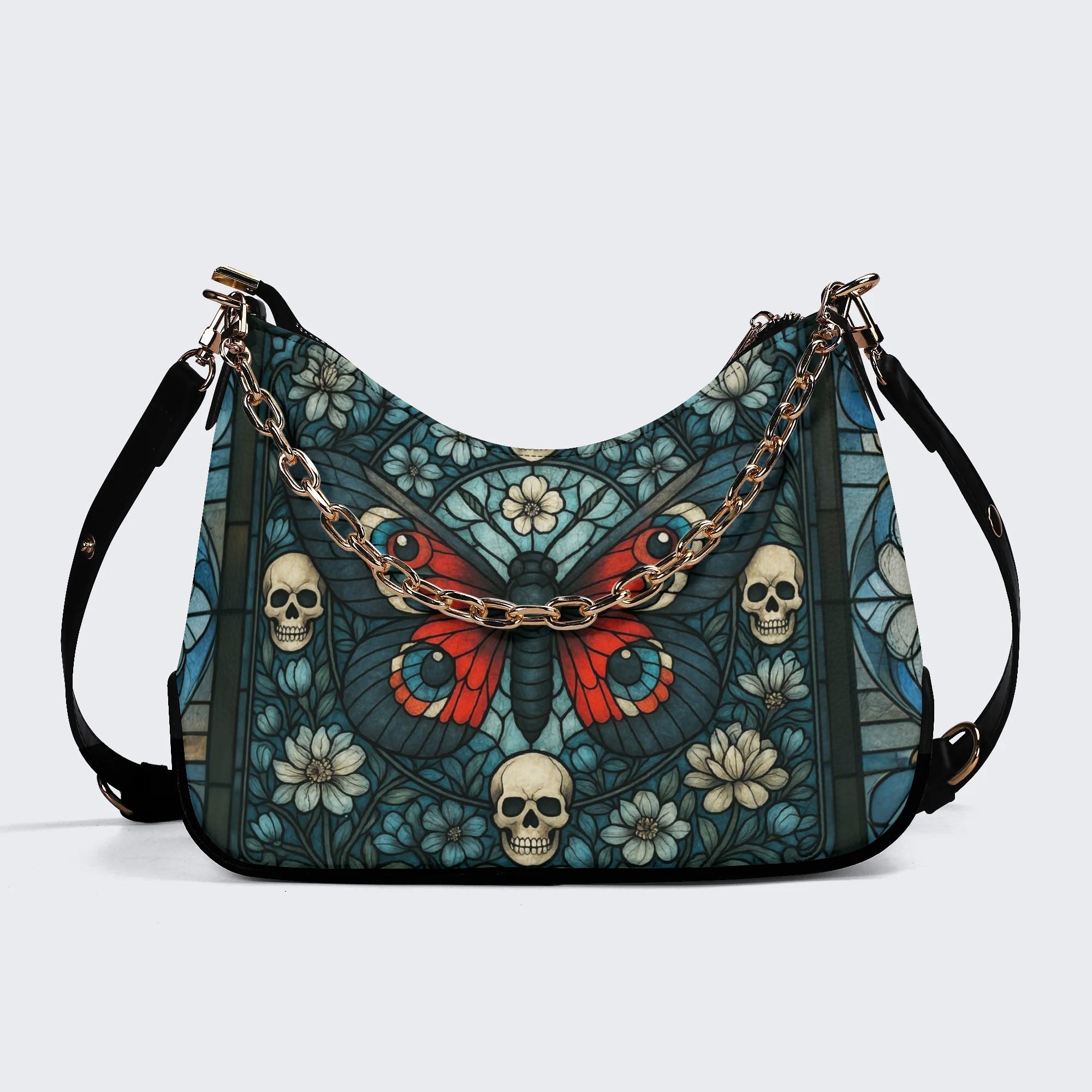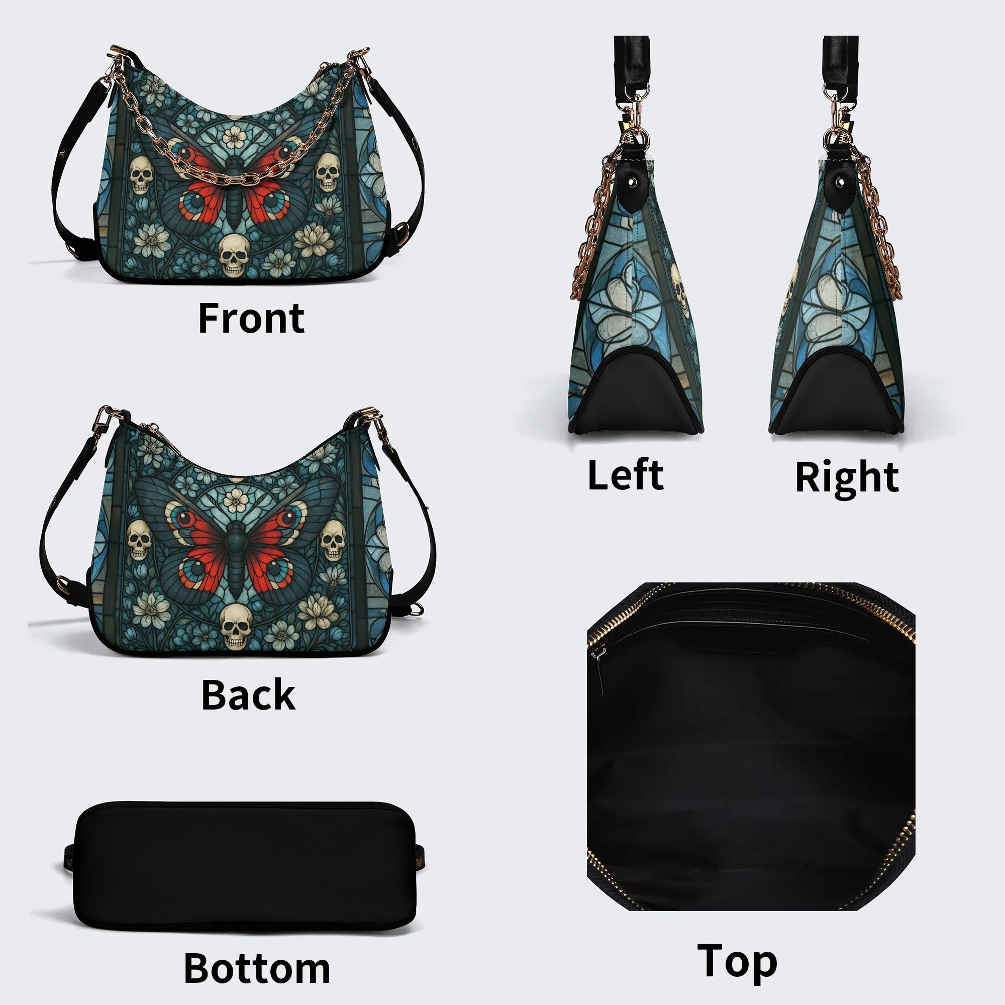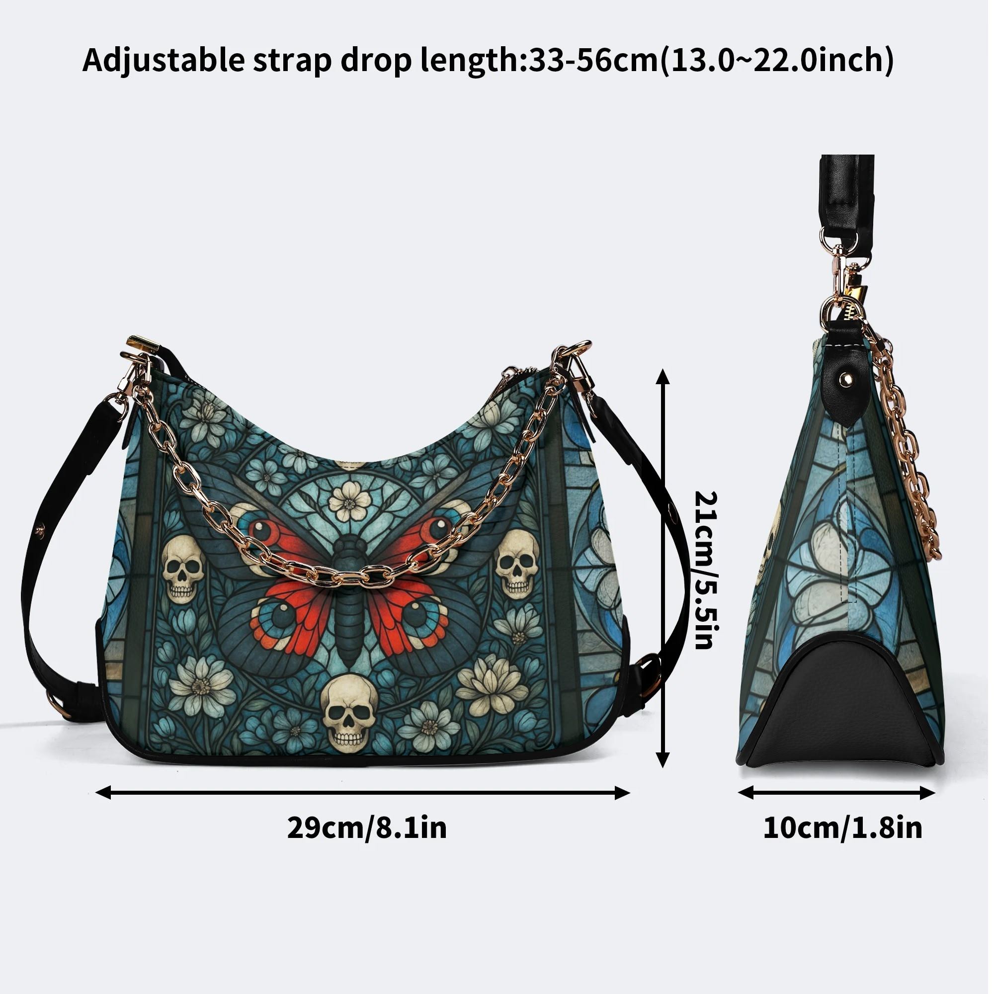 Vintage Moth And Skull Print - Leather Crossbody BagVintage Moth And Skull Print - Leather Crossbody Bag