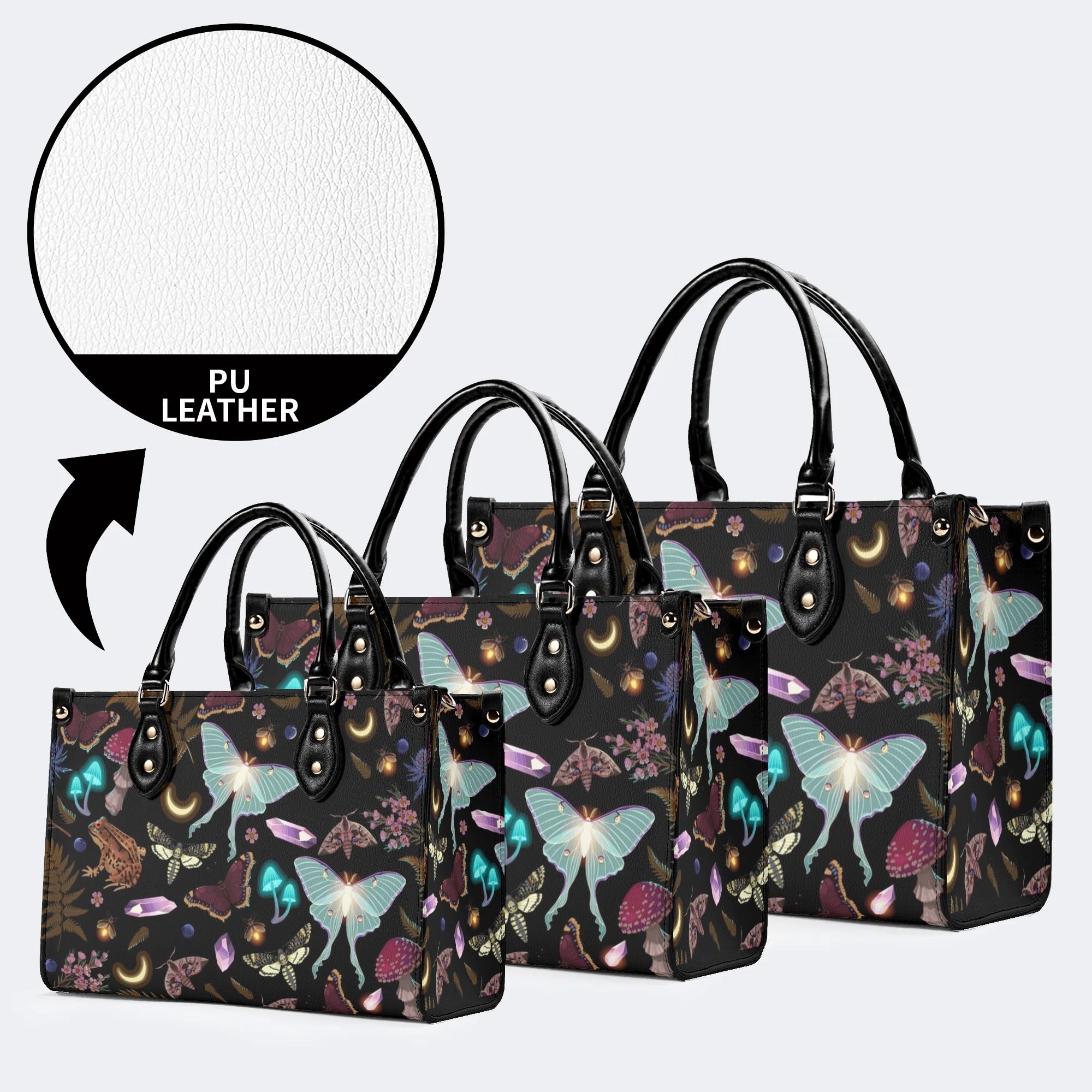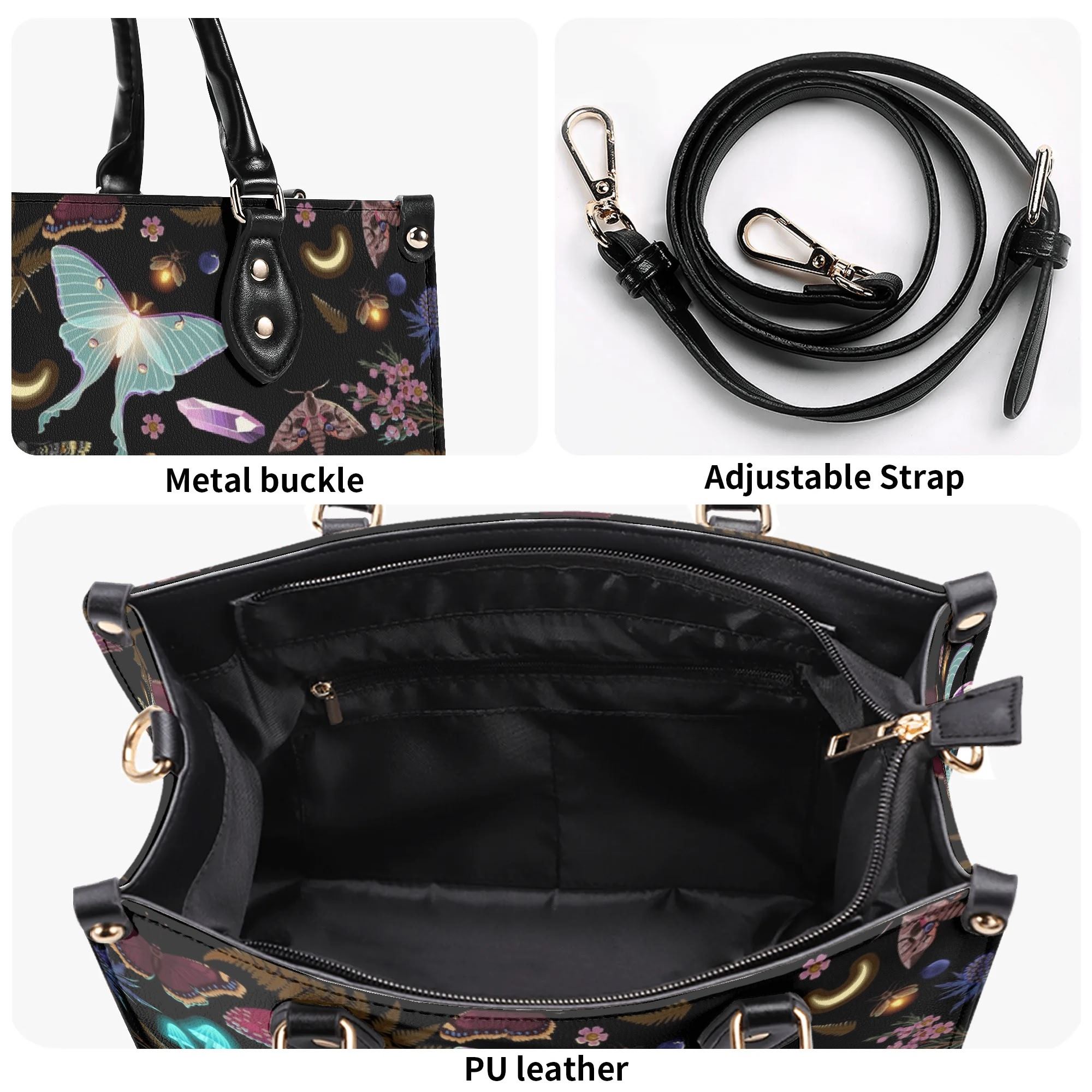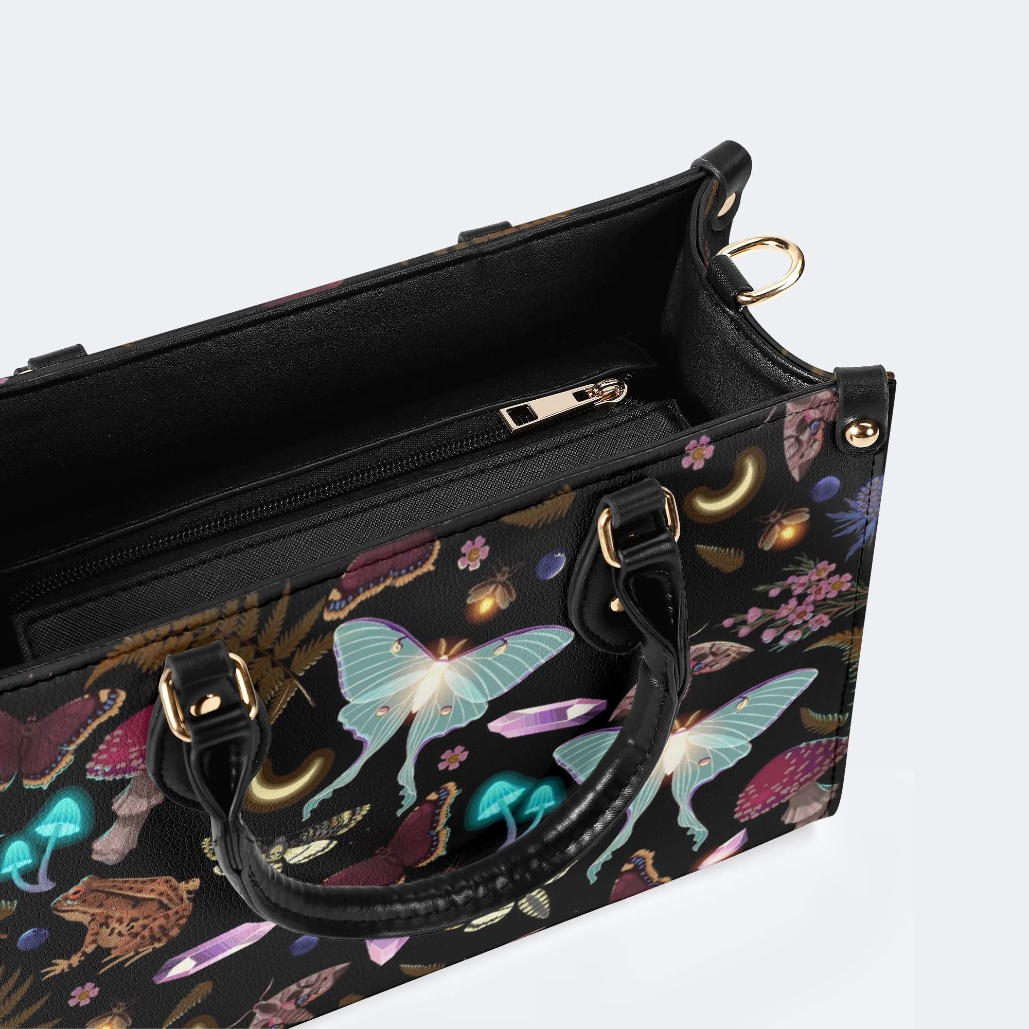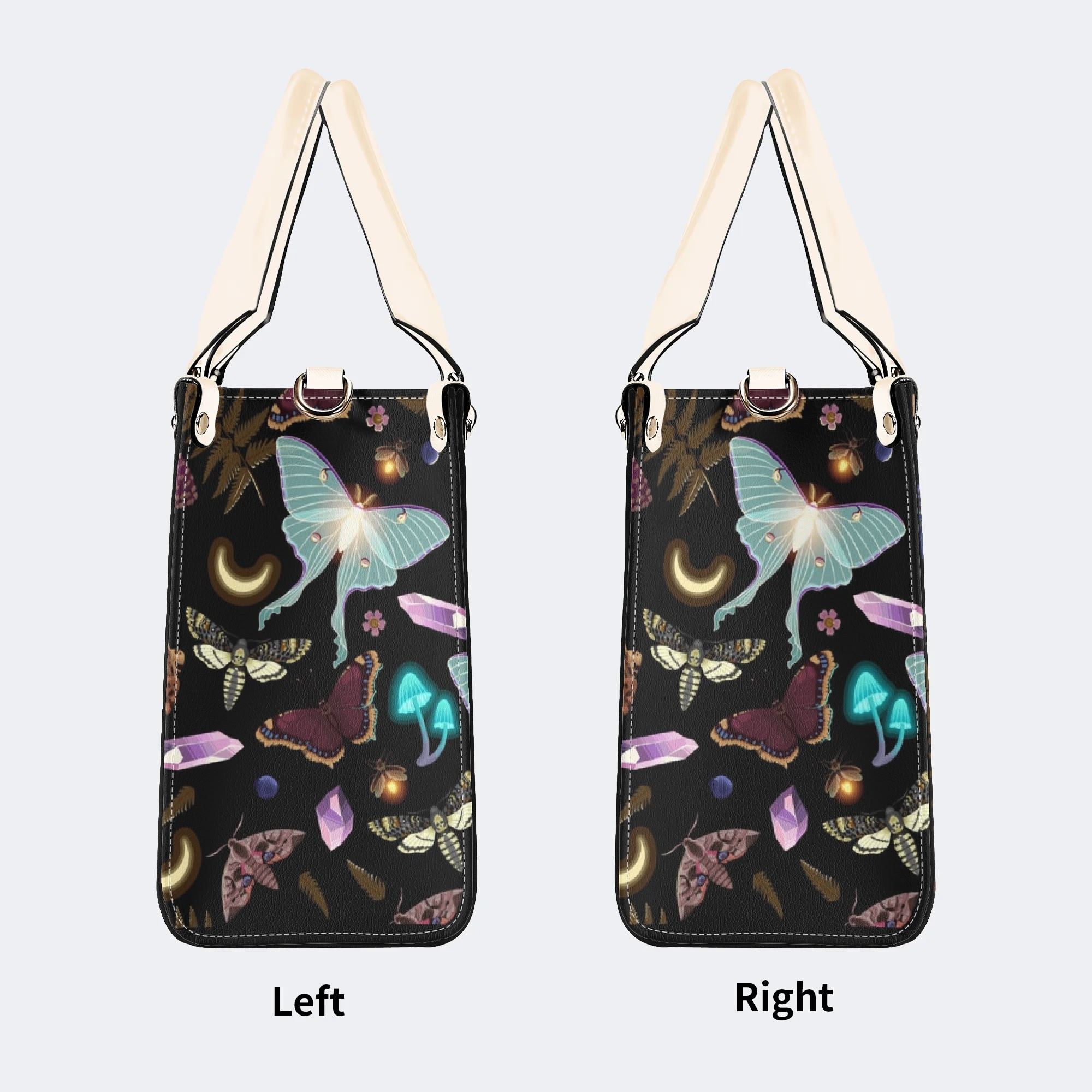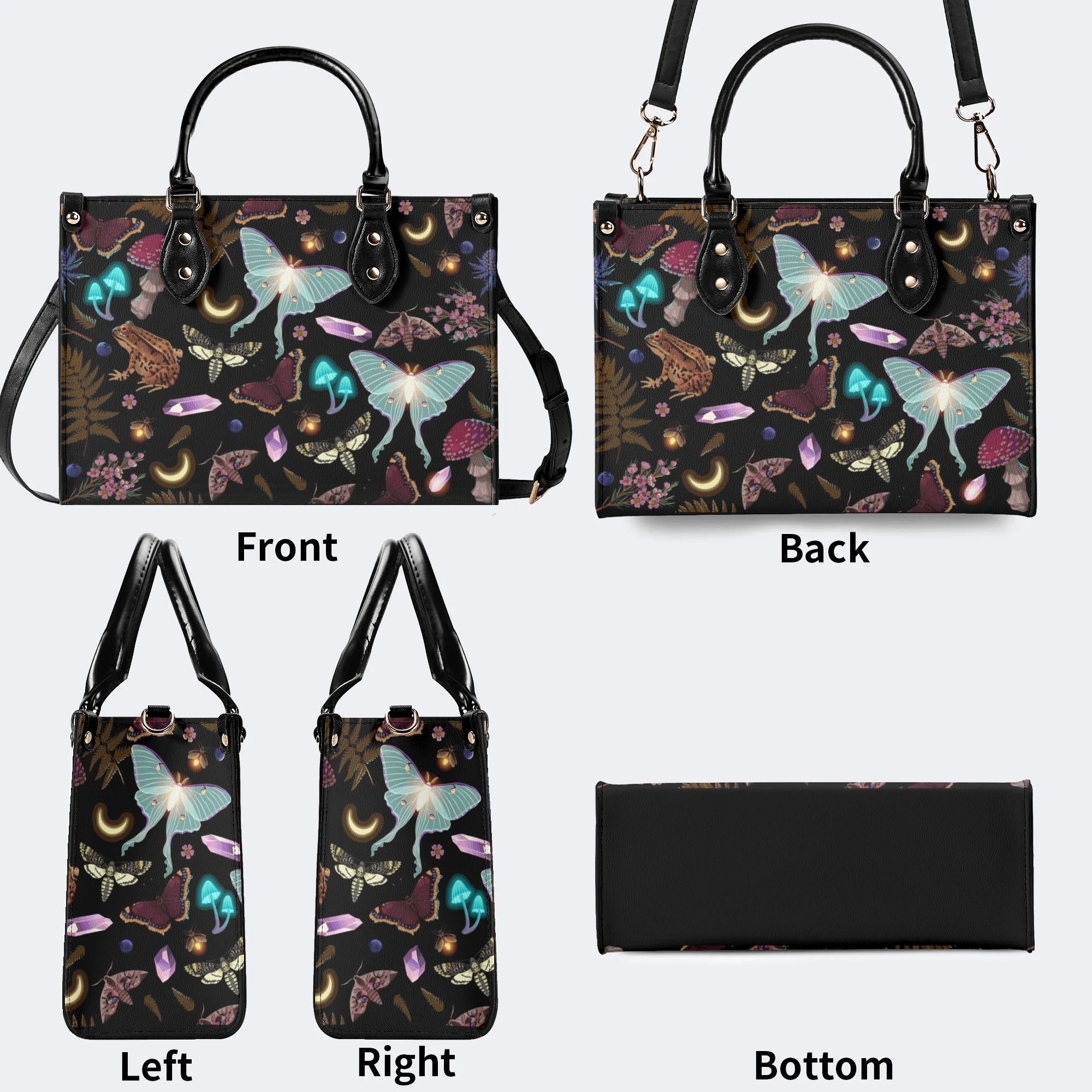 Fluorescent Moth And Botanical Print - Leather Handbag