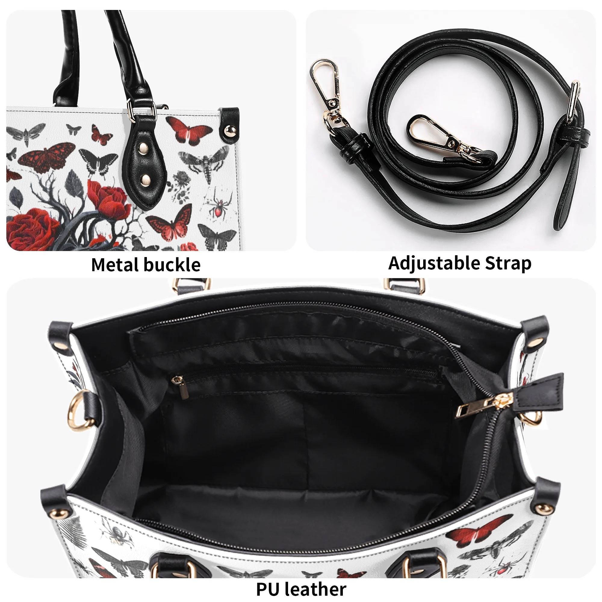 Heart Rose Butterfly Print - Leather HandbagHeart Rose Butterfly Print - Leather Handbag