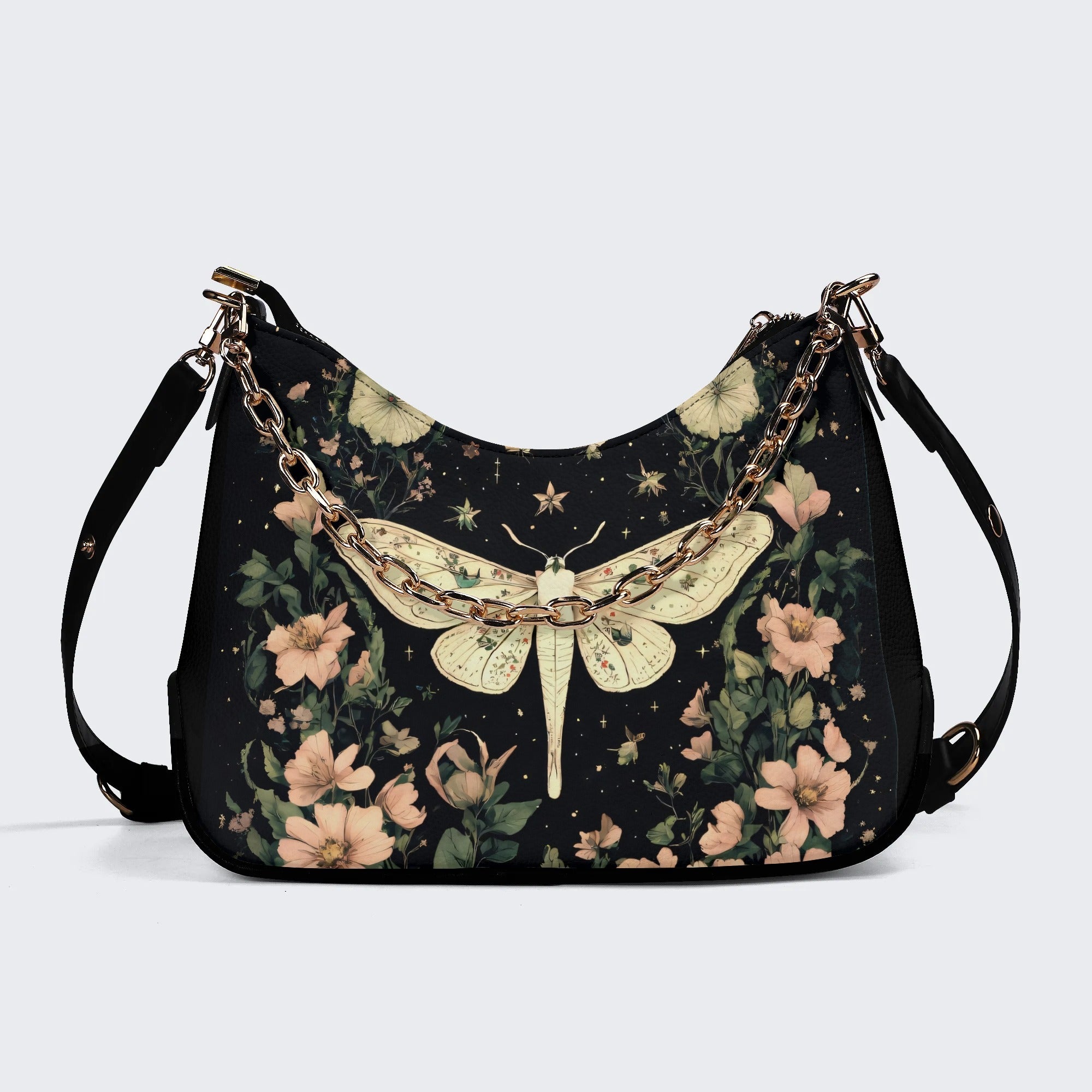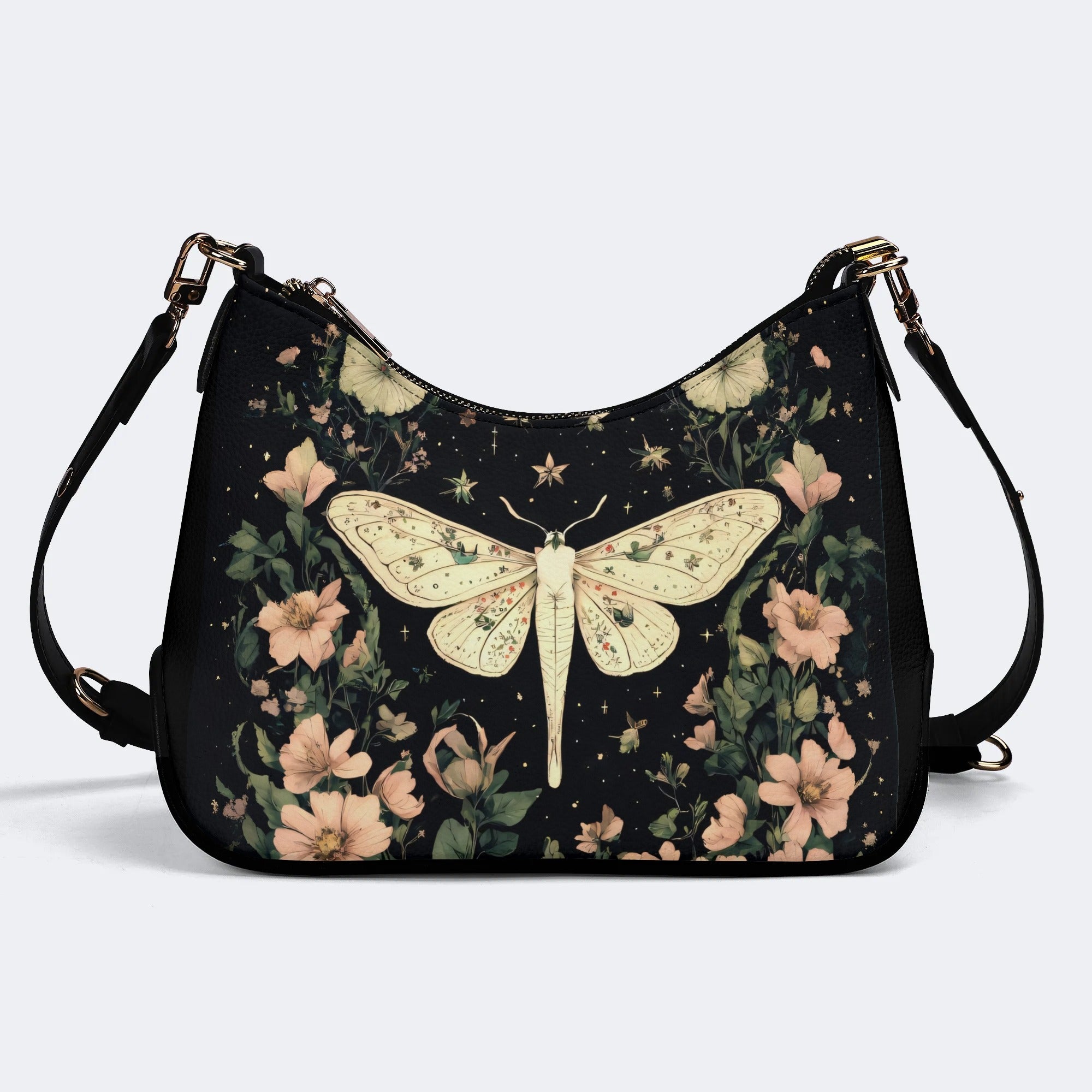 Moth In The Flower Bush - Leather Crossbody BagMoth In The Flower Bush - Leather Crossbody Bag