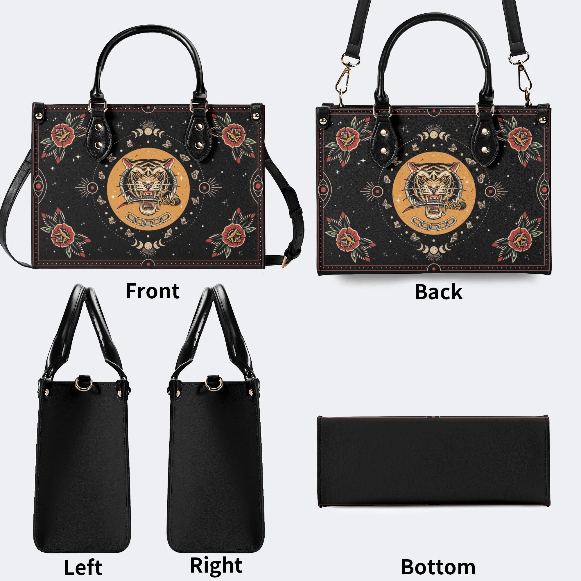 Vintage Tiger And Moth Print - Leather HandbagVintage Tiger And Moth Print - Leather Handbag