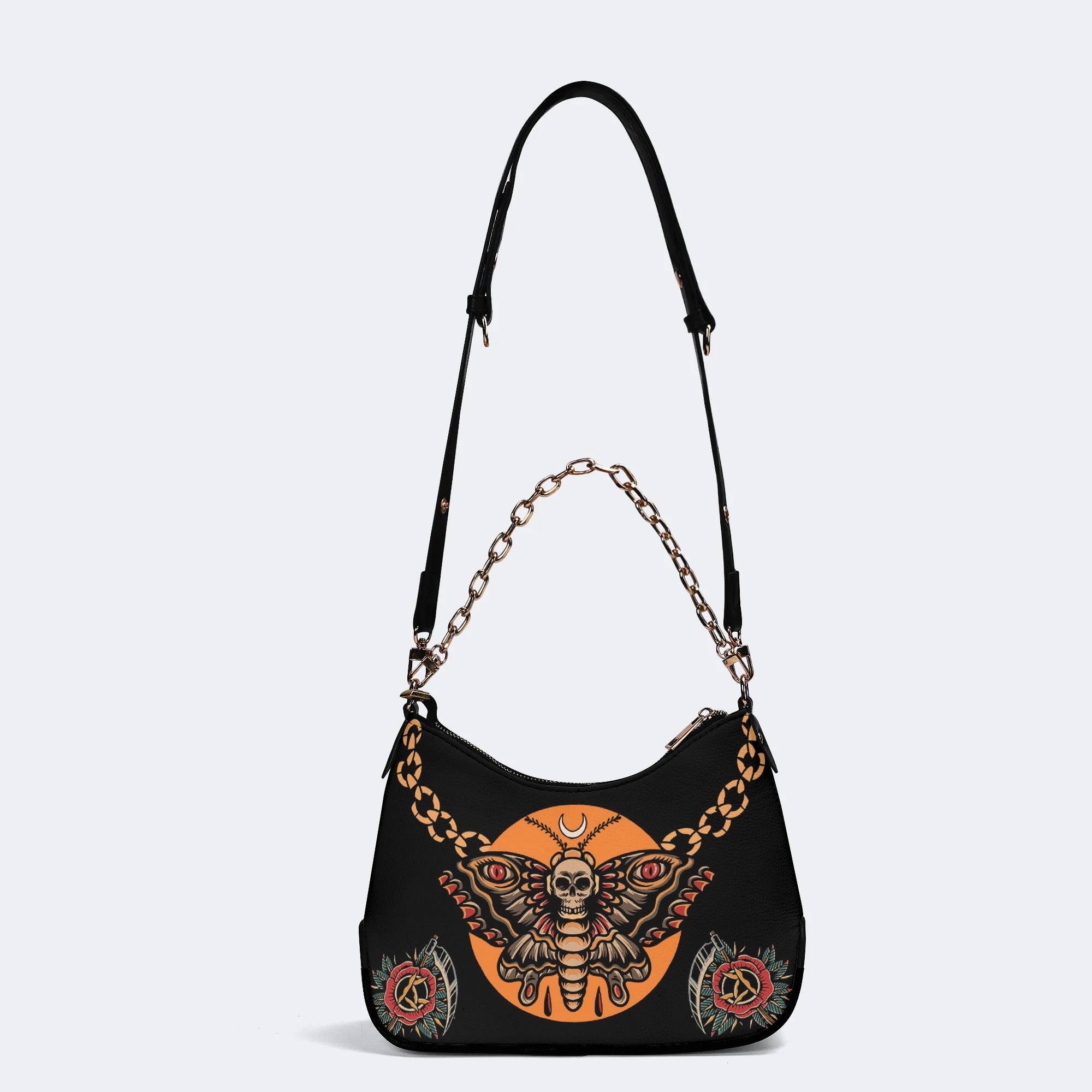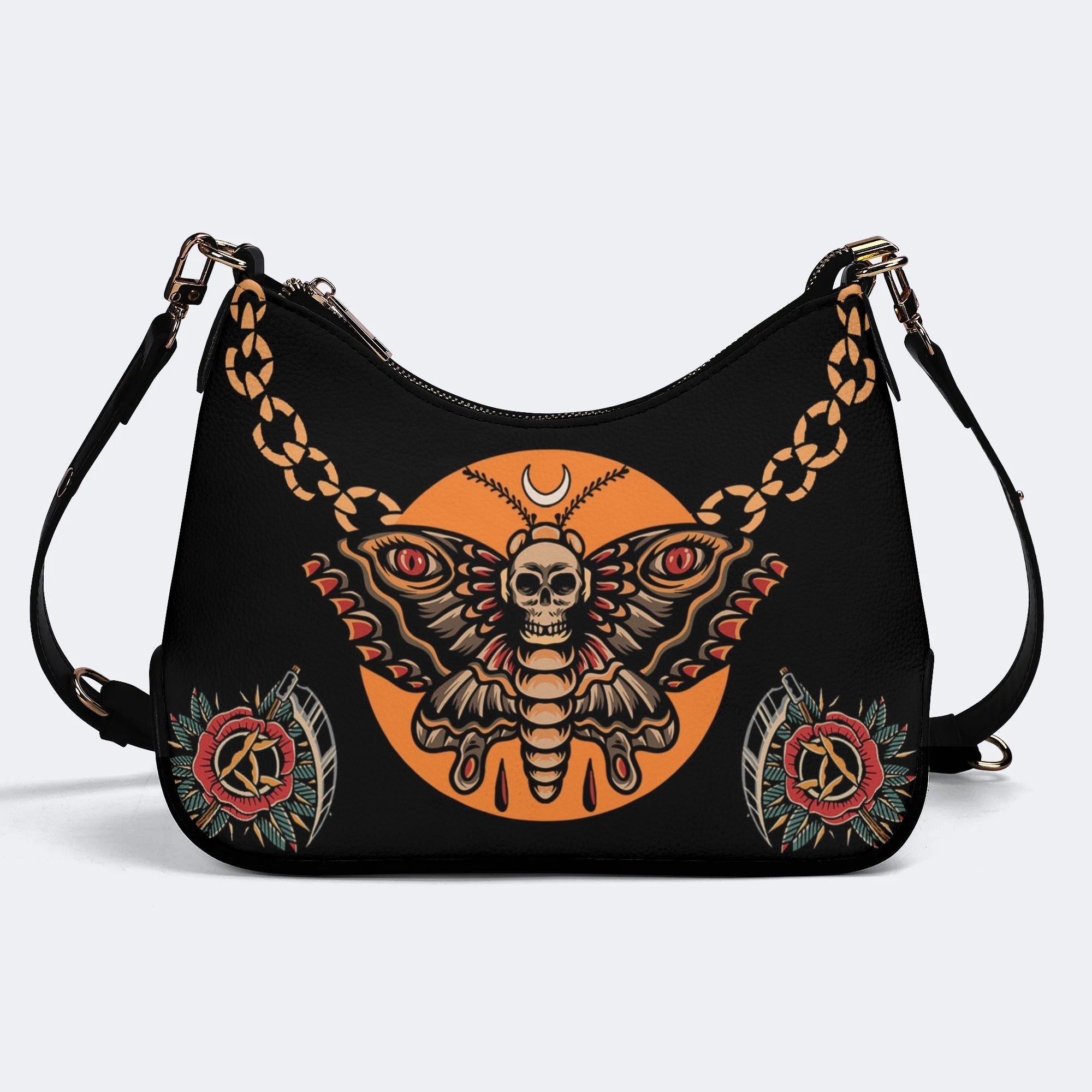 Old School Death Moth Vintage Print - Leather Crossbody BagOld School Death Moth Vintage Print - Leather Crossbody Bag