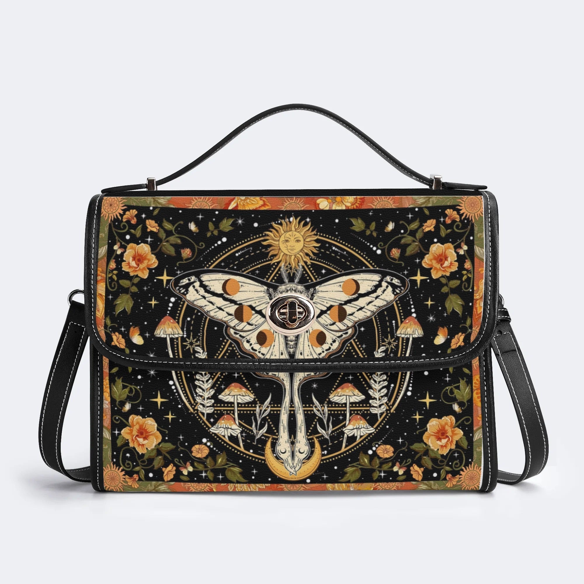 Retro Bohemian Sun Moon Star Moth - Leather Satchel Bag