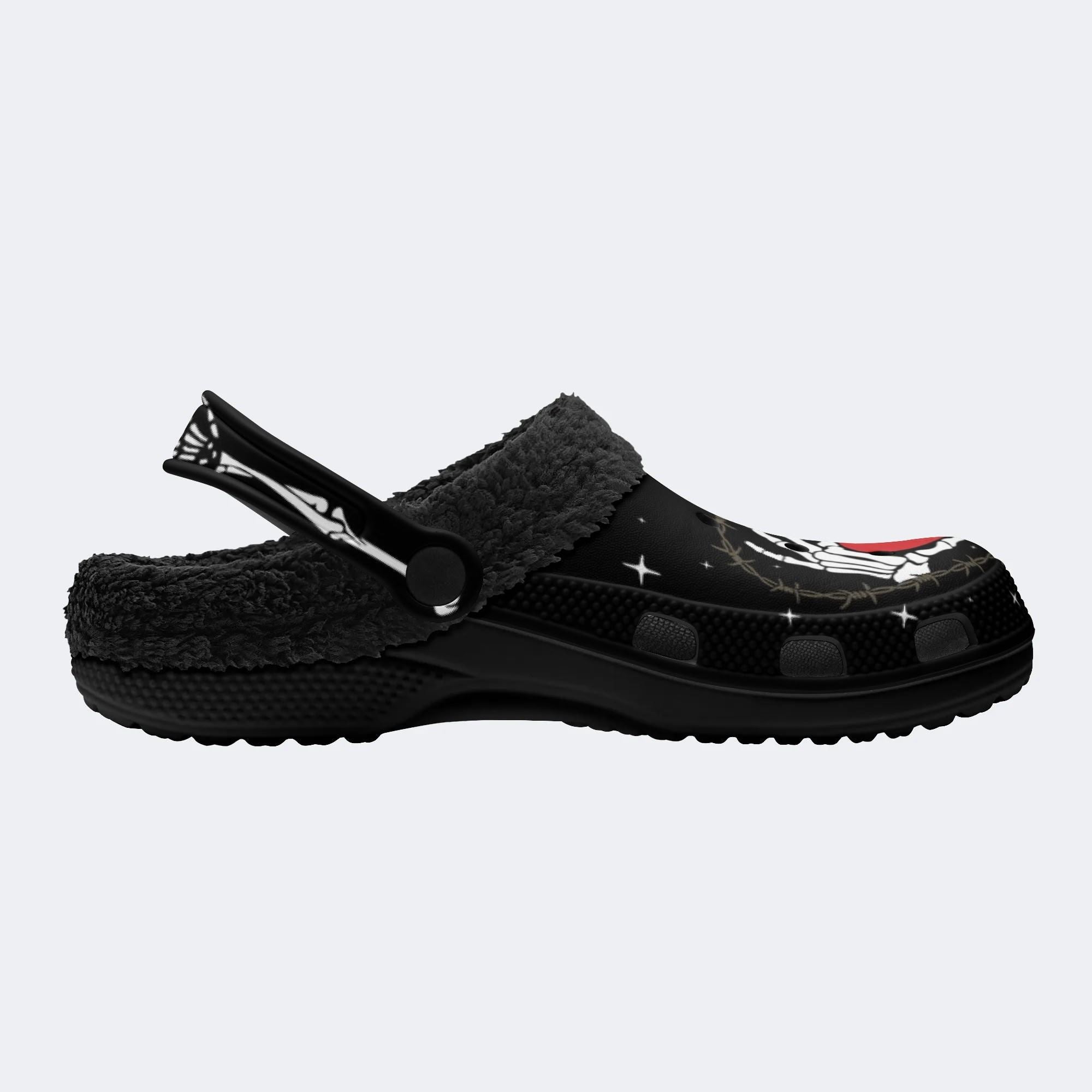 Retro Skull Heart Print - Fur Lined Slippers/SandalsRetro Skull Heart Print - Fur Lined Slippers/Sandals