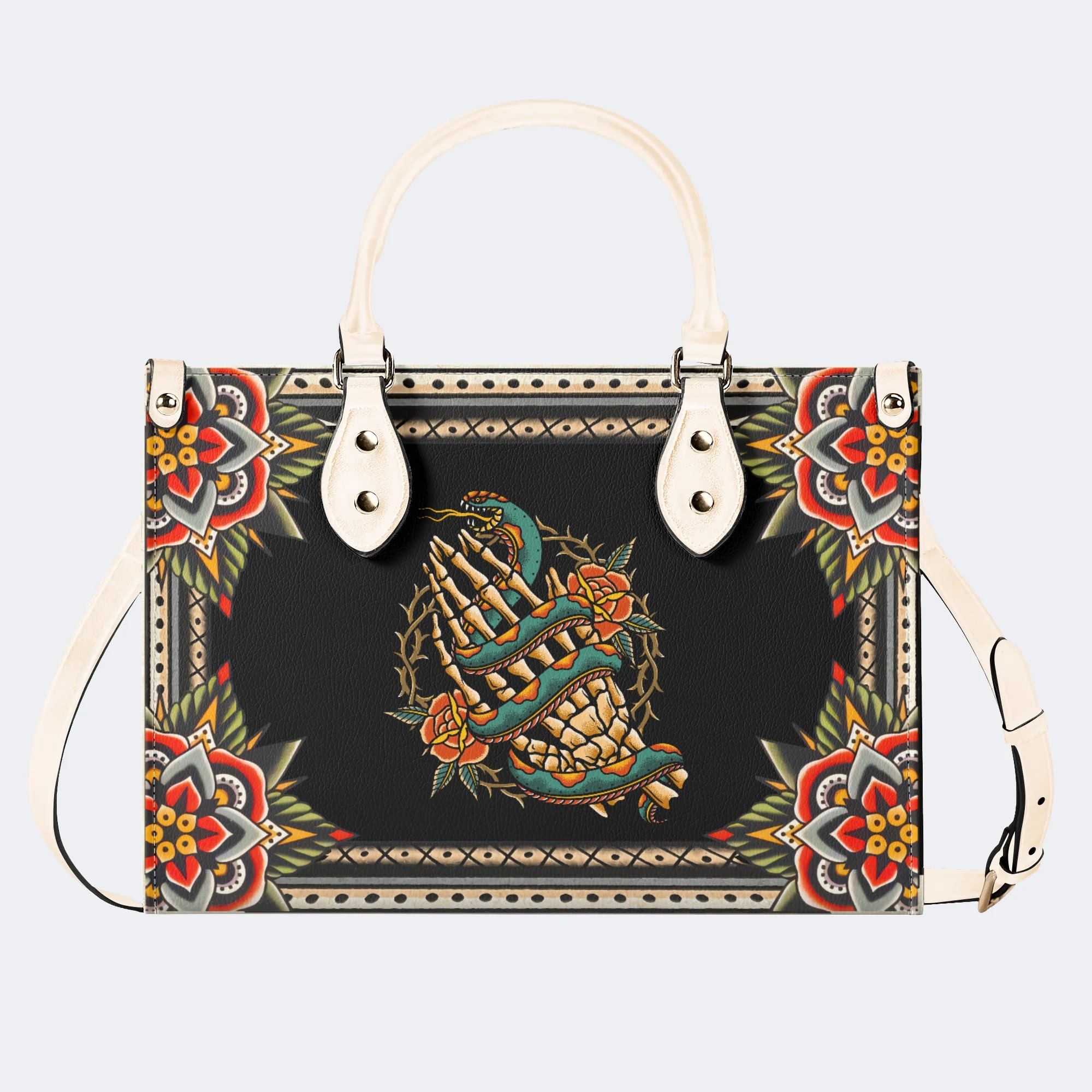 Skeleton Hand And Snake - Leather HandbagSkeleton Hand And Snake - Leather Handbag