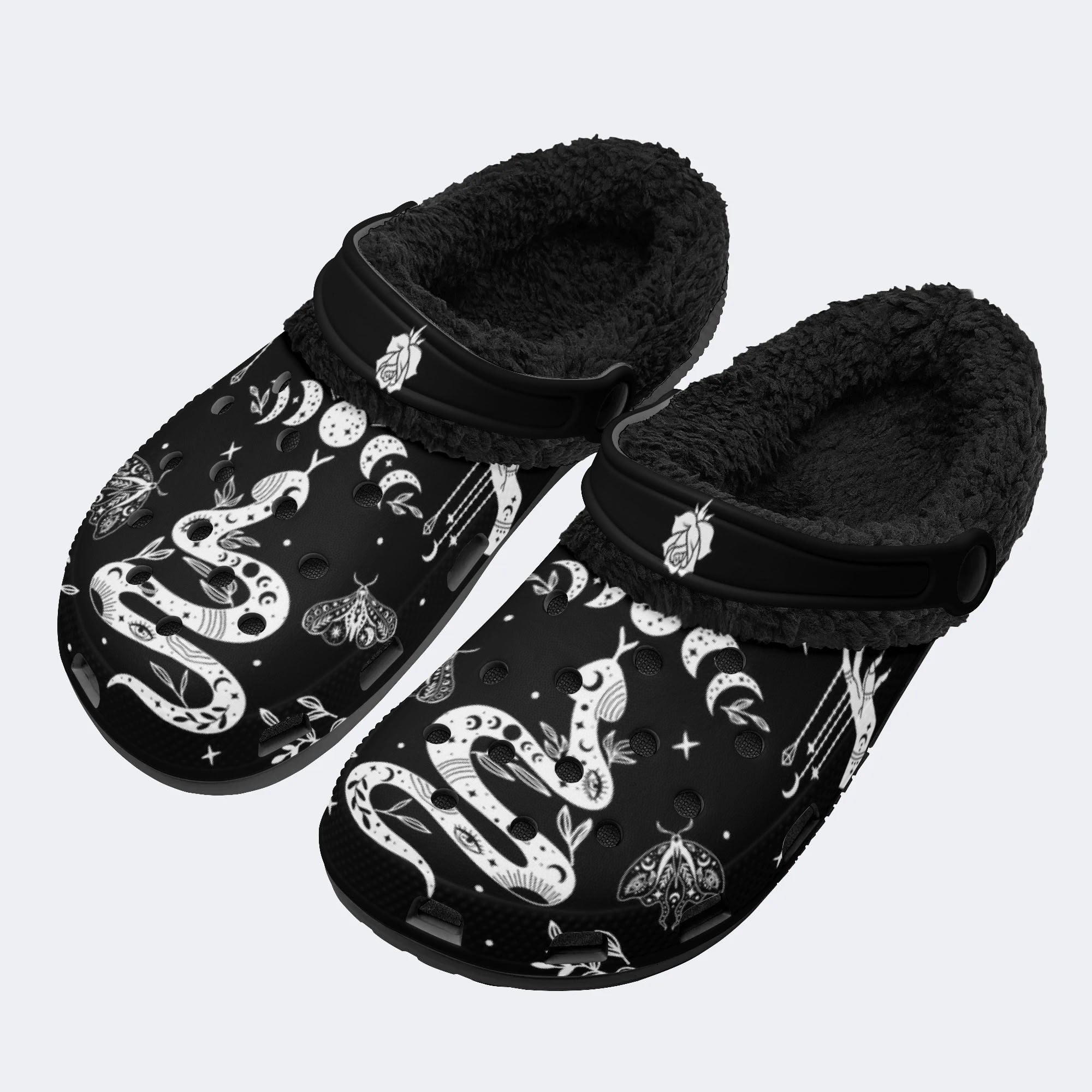 Snake And Beath Moth Print - Fur Lined Slippers/Sandals