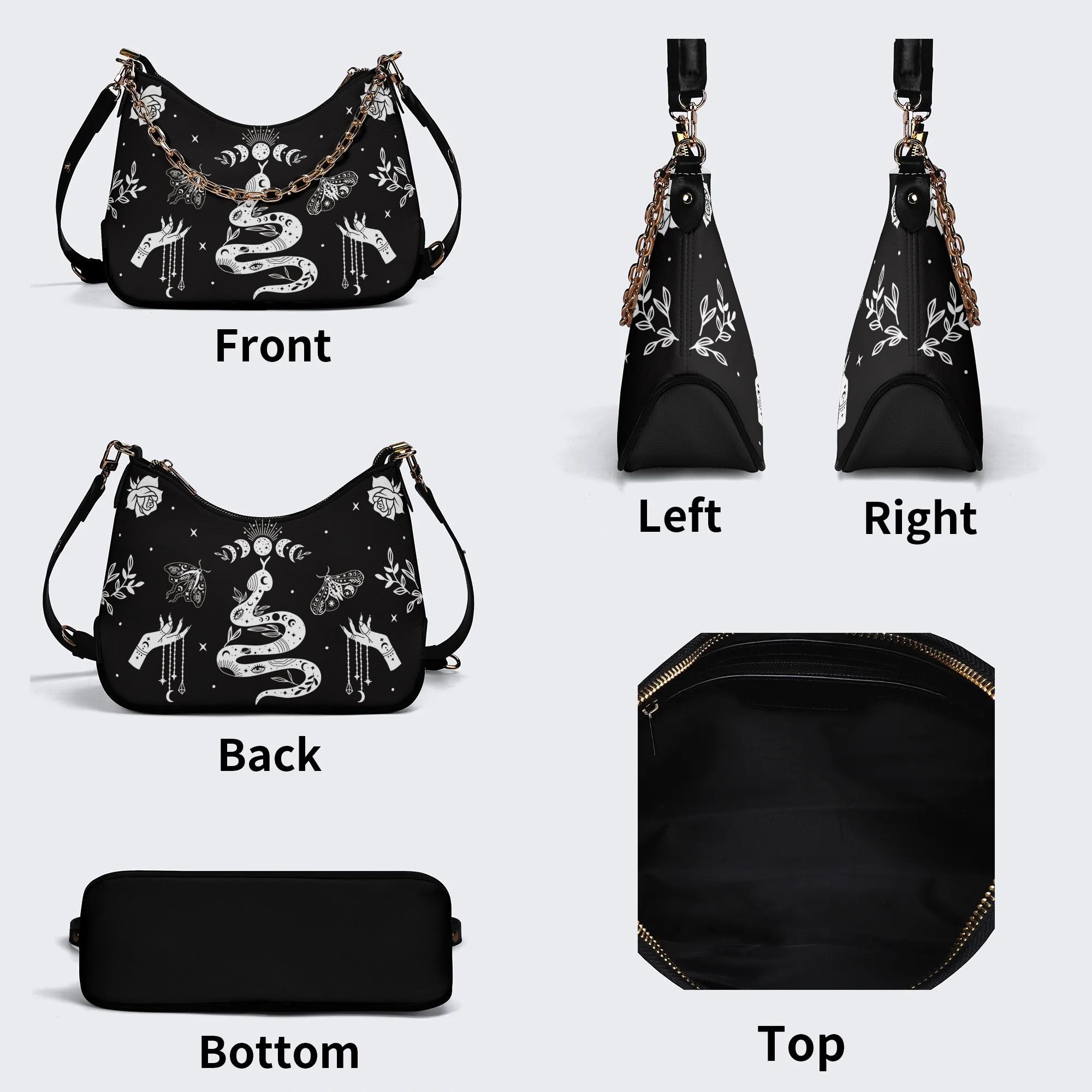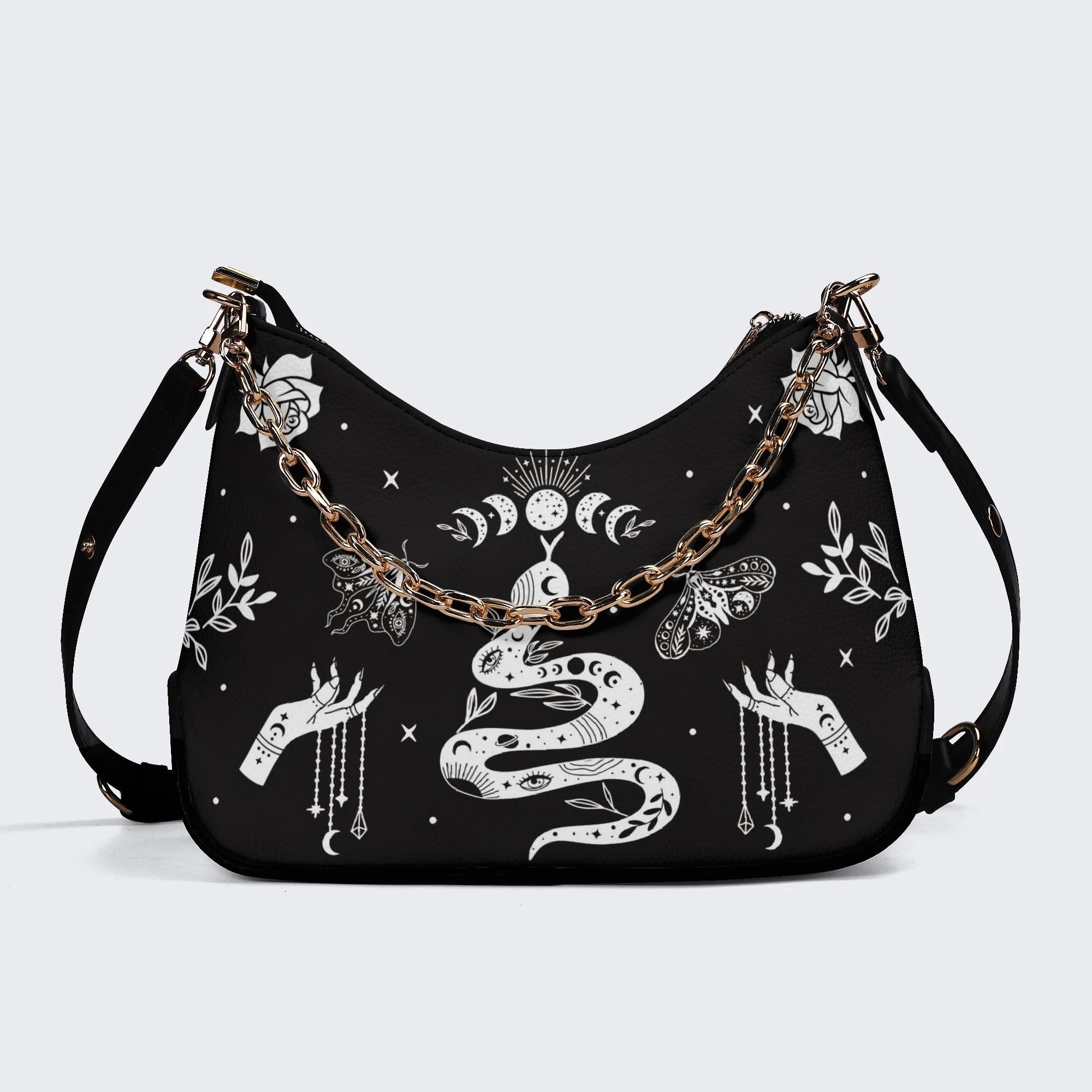 Snake And Beath Moth Print - Leather Crossbody Bag