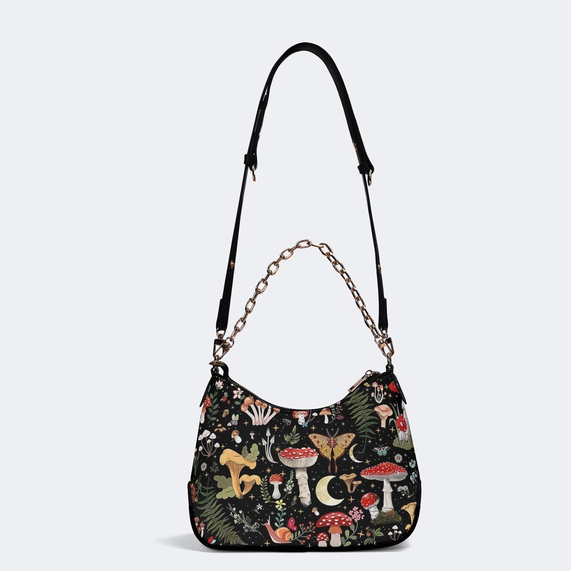 Starry Mushroom Print - Leather Crossbody BagStarry Mushroom Print - Leather Crossbody Bag