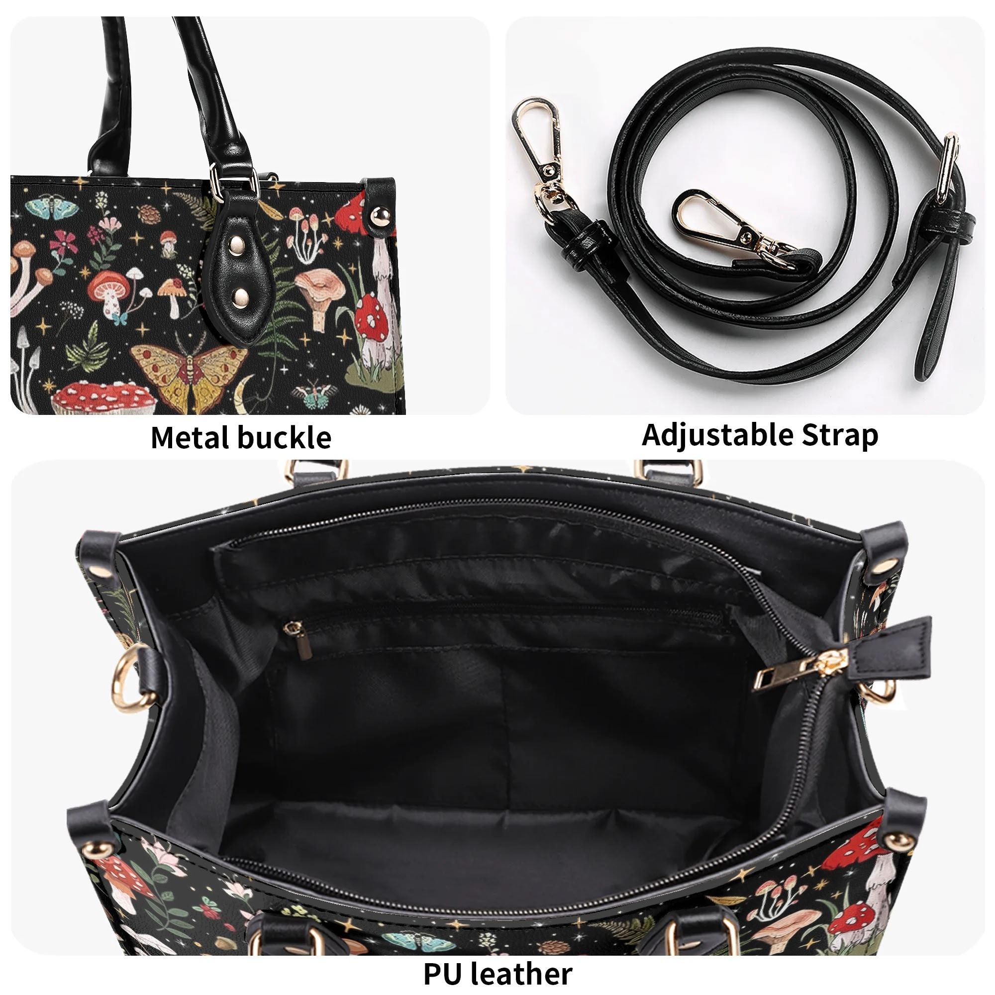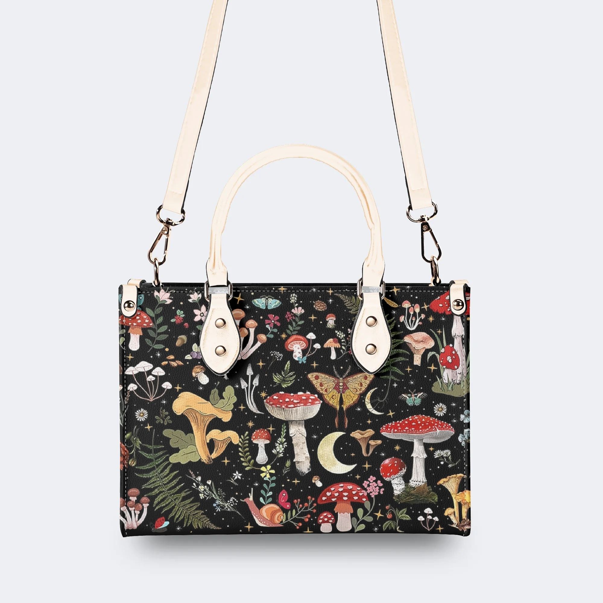 Starry Mushroom Print - Leather HandbagStarry Mushroom Print - Leather Handbag