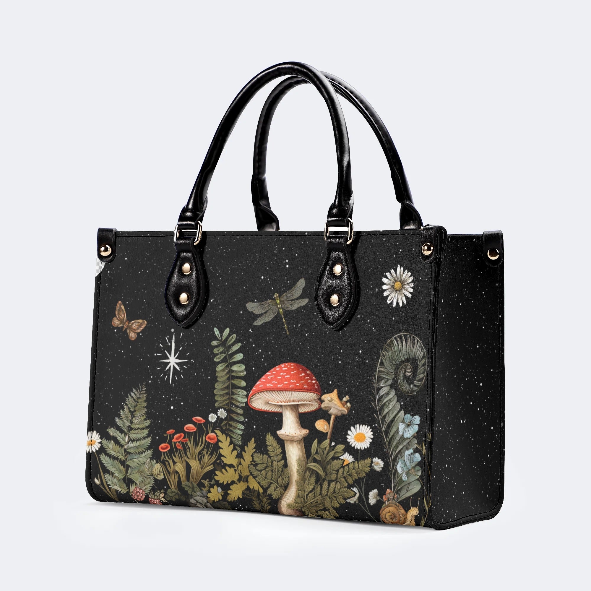 Starry Night Mushroom Moth Print - Leather HandbagStarry Night Mushroom Moth Print - Leather Handbag