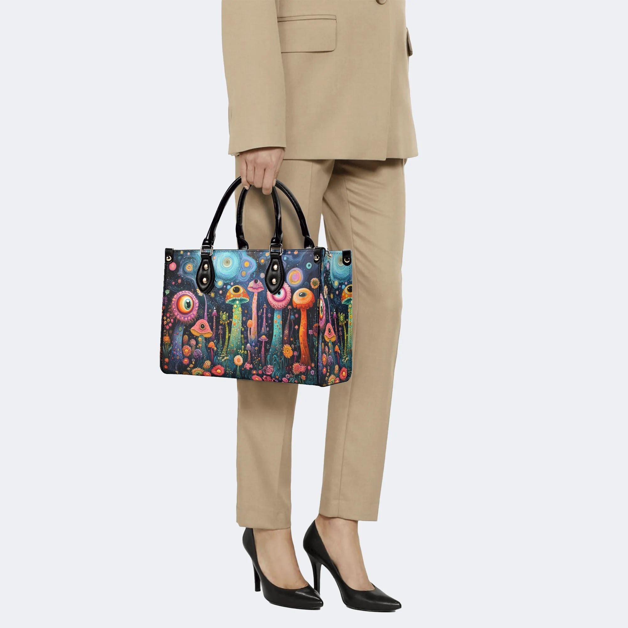 The World Of Mushrooms - Leather HandbagThe World Of Mushrooms - Leather Handbag