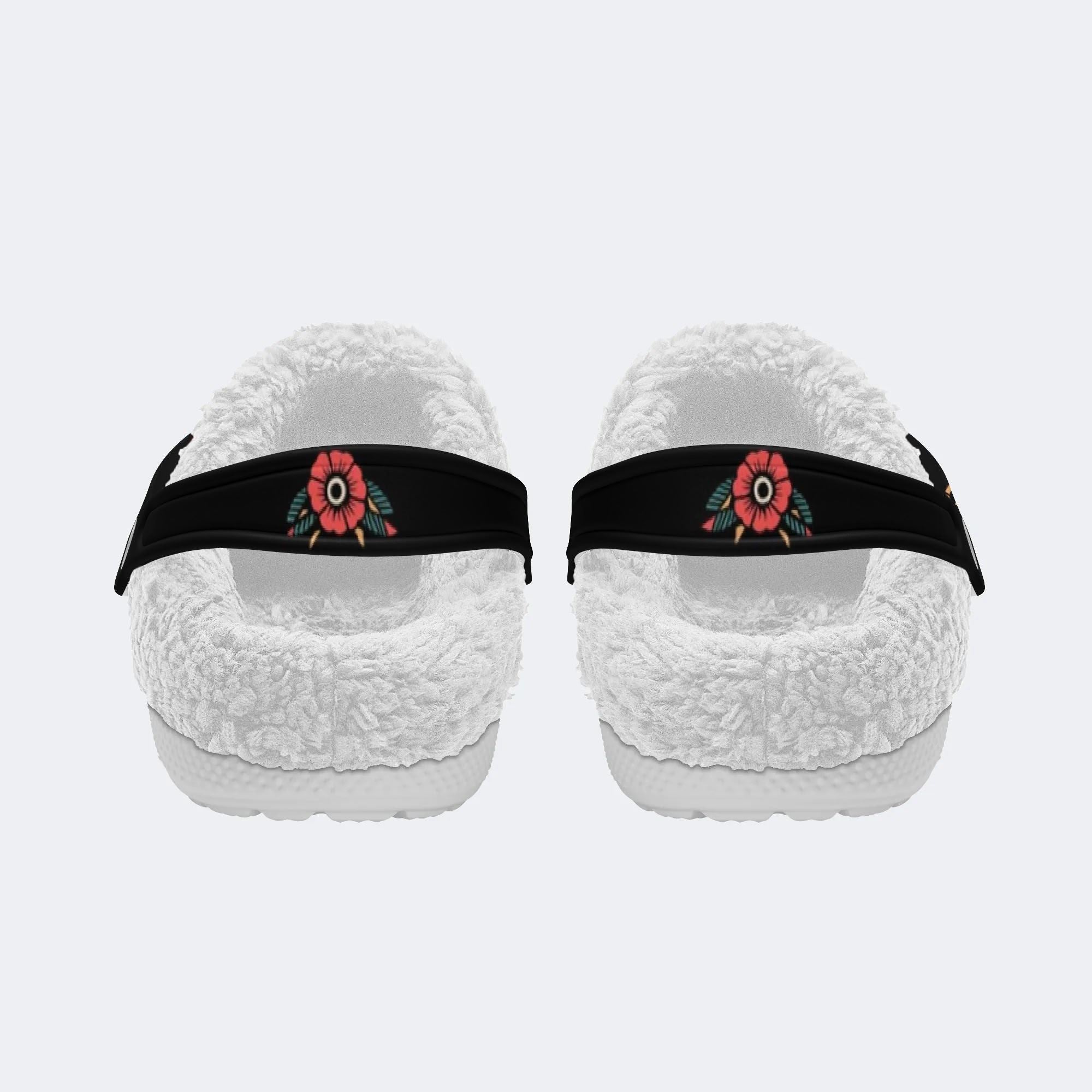 * Materials: Black/White EVA Outsoles basic support with interior is lined with ultra-soft fleece fur, providing all-day cushioning and insulation.