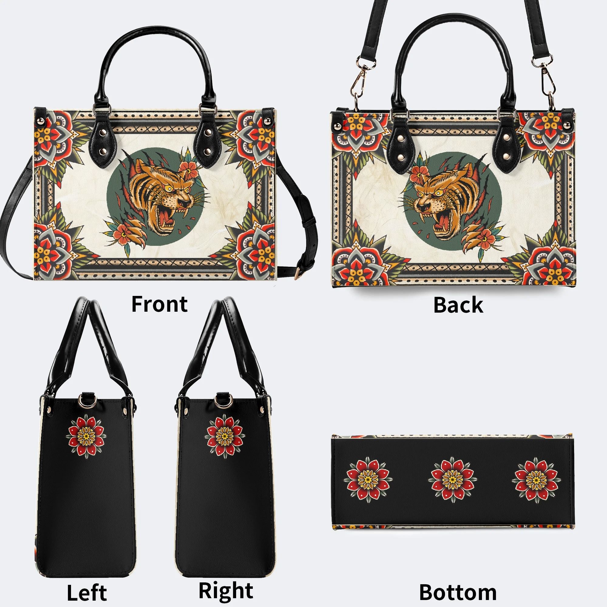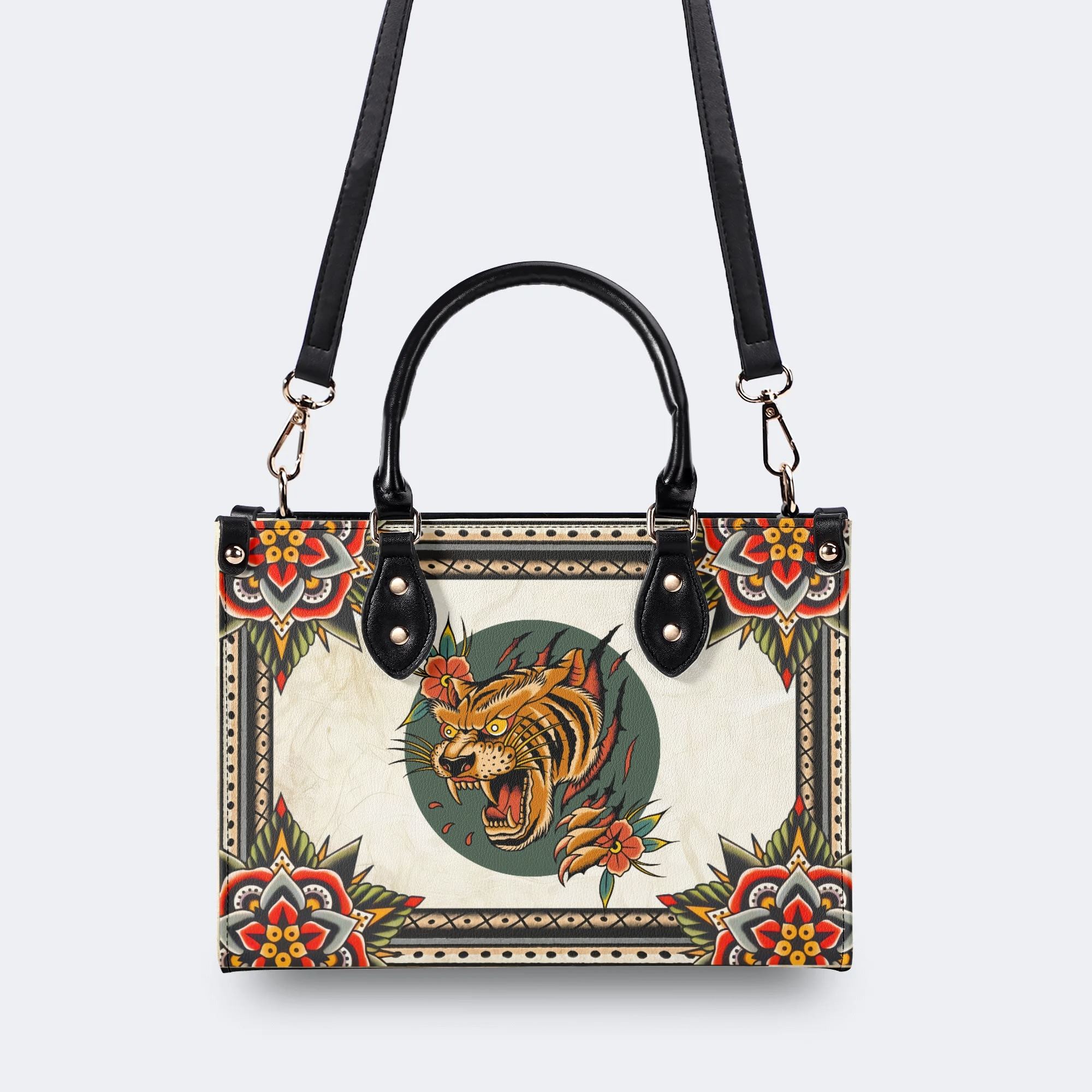 Tiger And Tiger Paw Print - Leather HandbagTiger And Tiger Paw Print - Leather Handbag