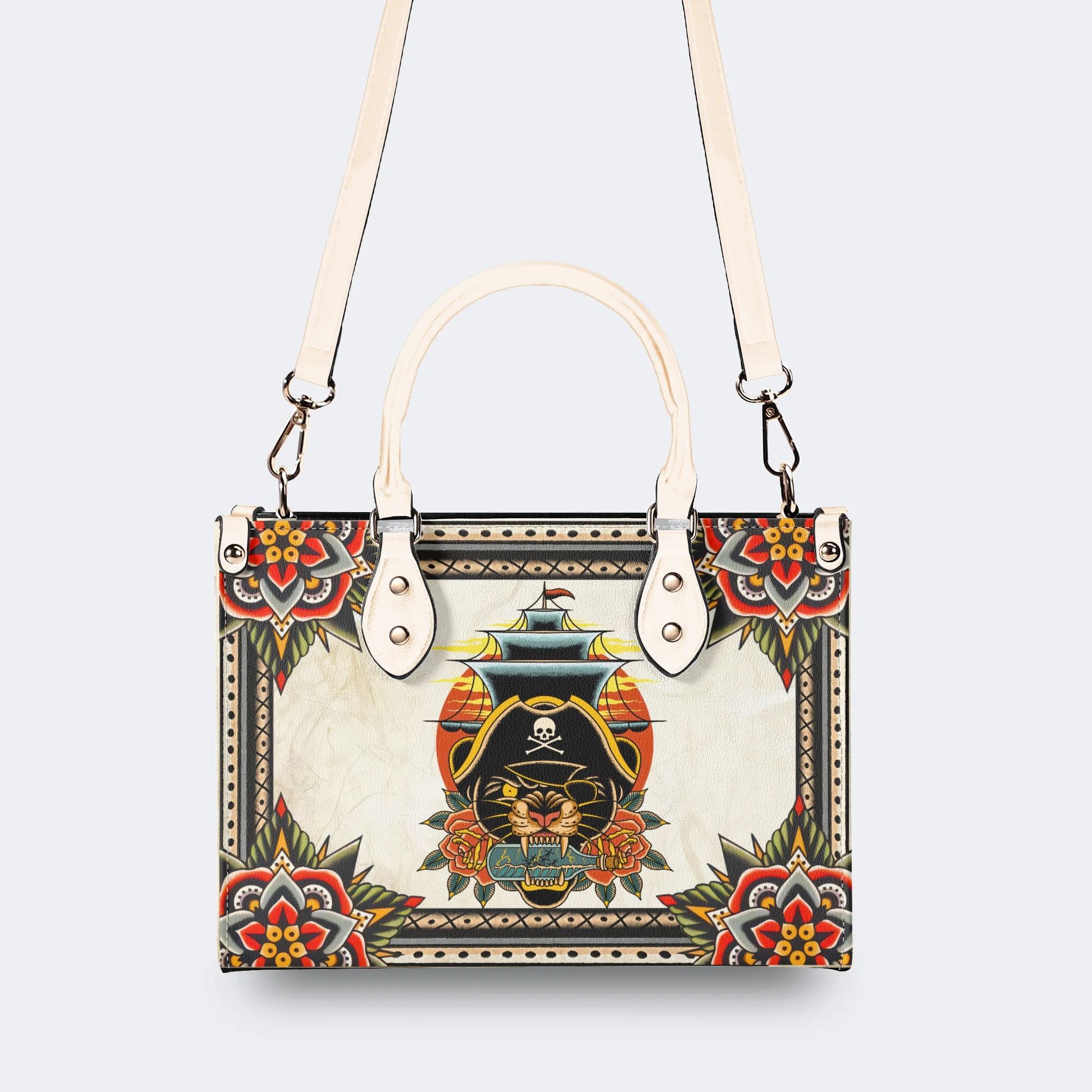 Vintage Black Panther On The Boat - Leather HandbagVintage Black Panther On The Boat - Leather Handbag