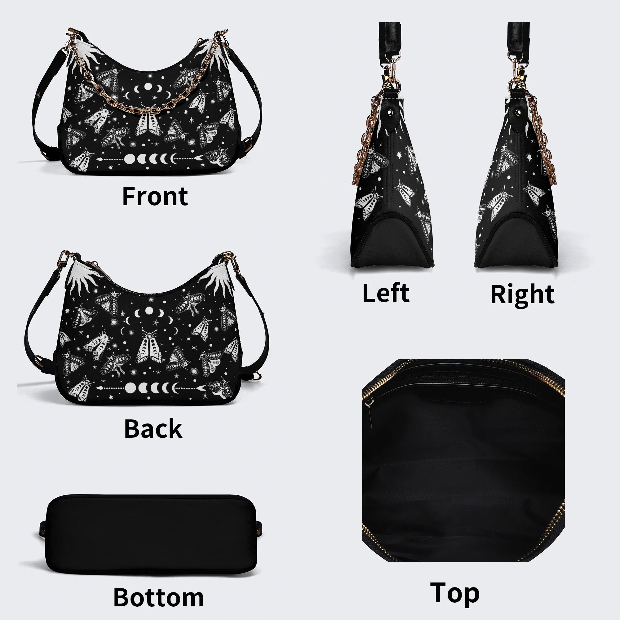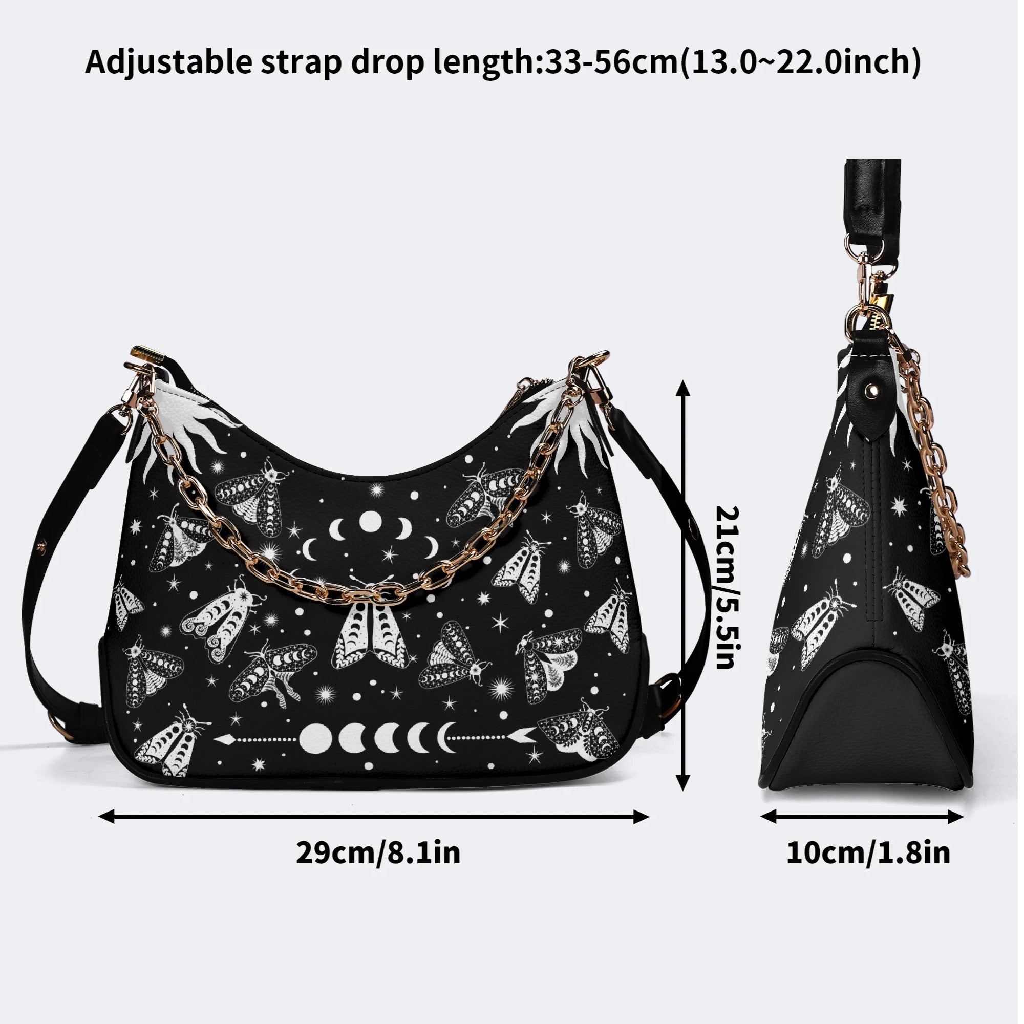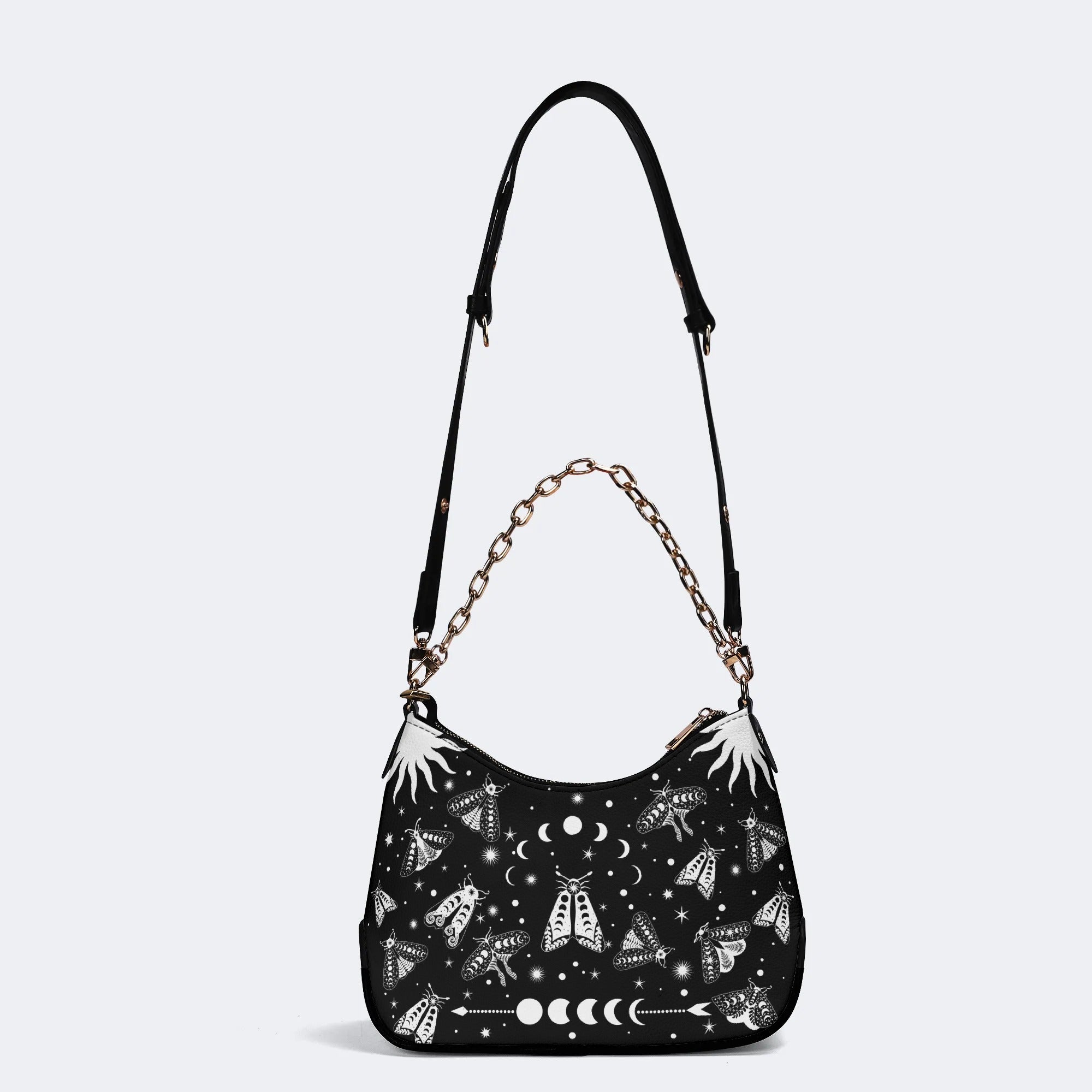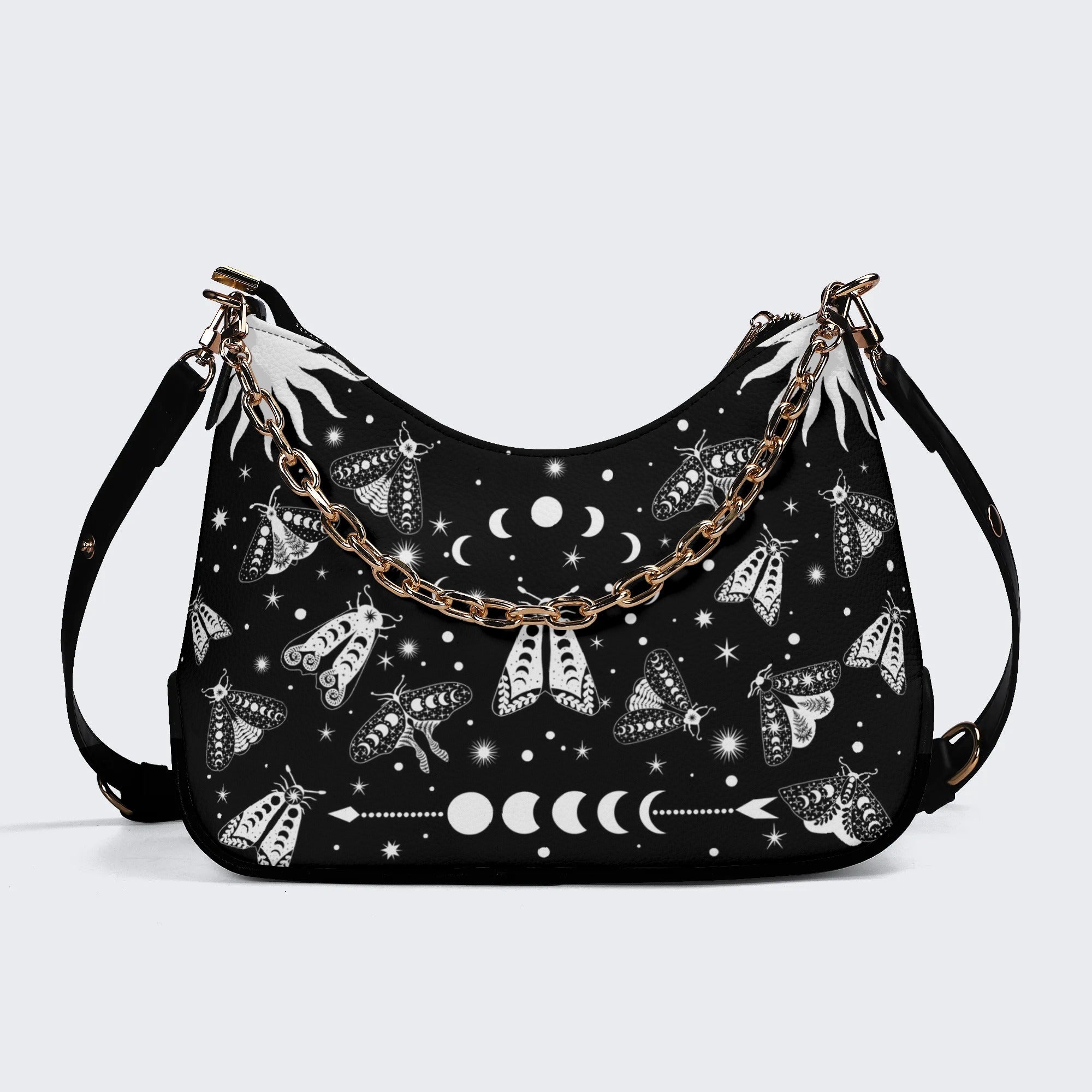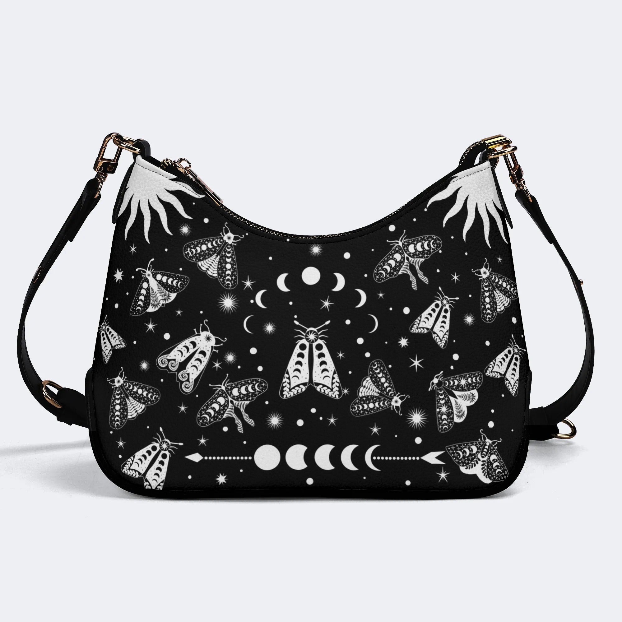 Vintage Dark Moth Print - Leather Crossbody BagVintage Dark Moth Print - Leather Crossbody Bag