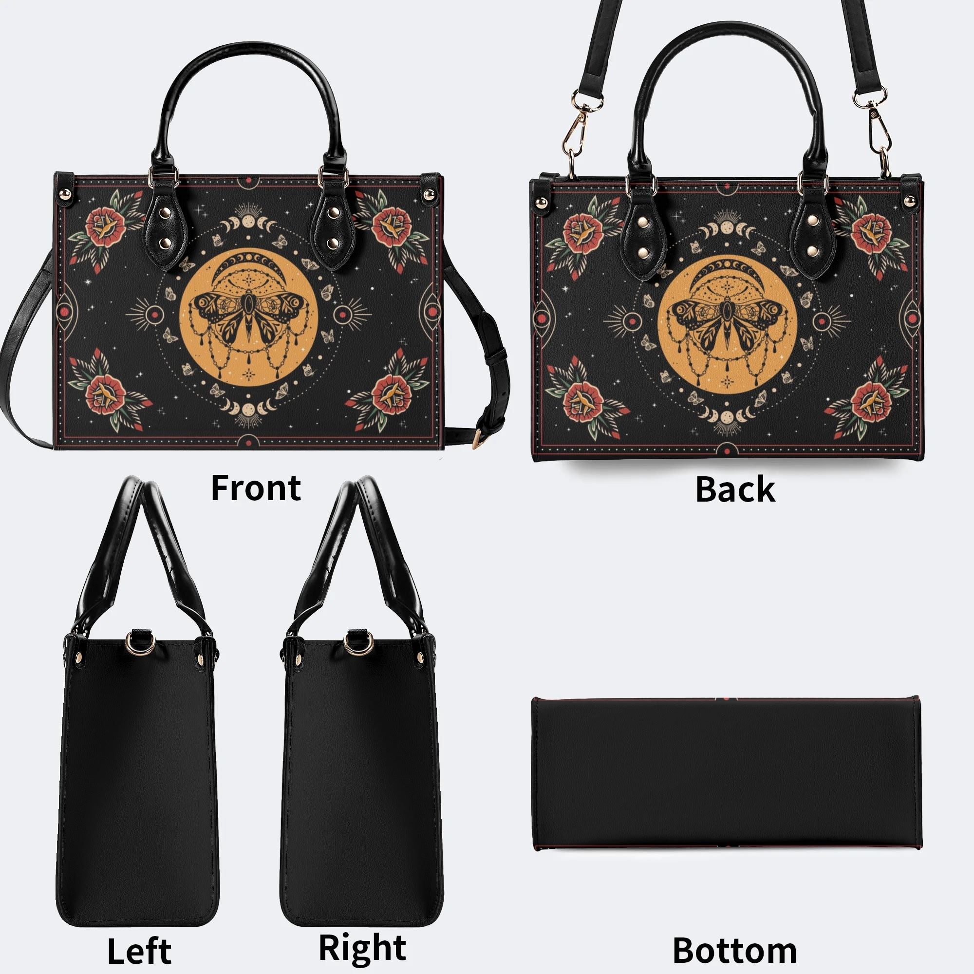 Vintage Moon Moth Print - Leather Handbag