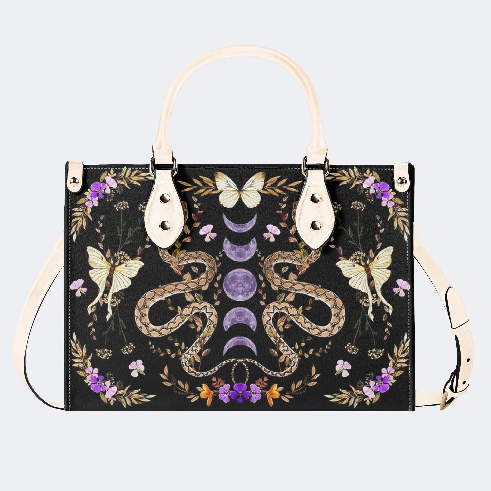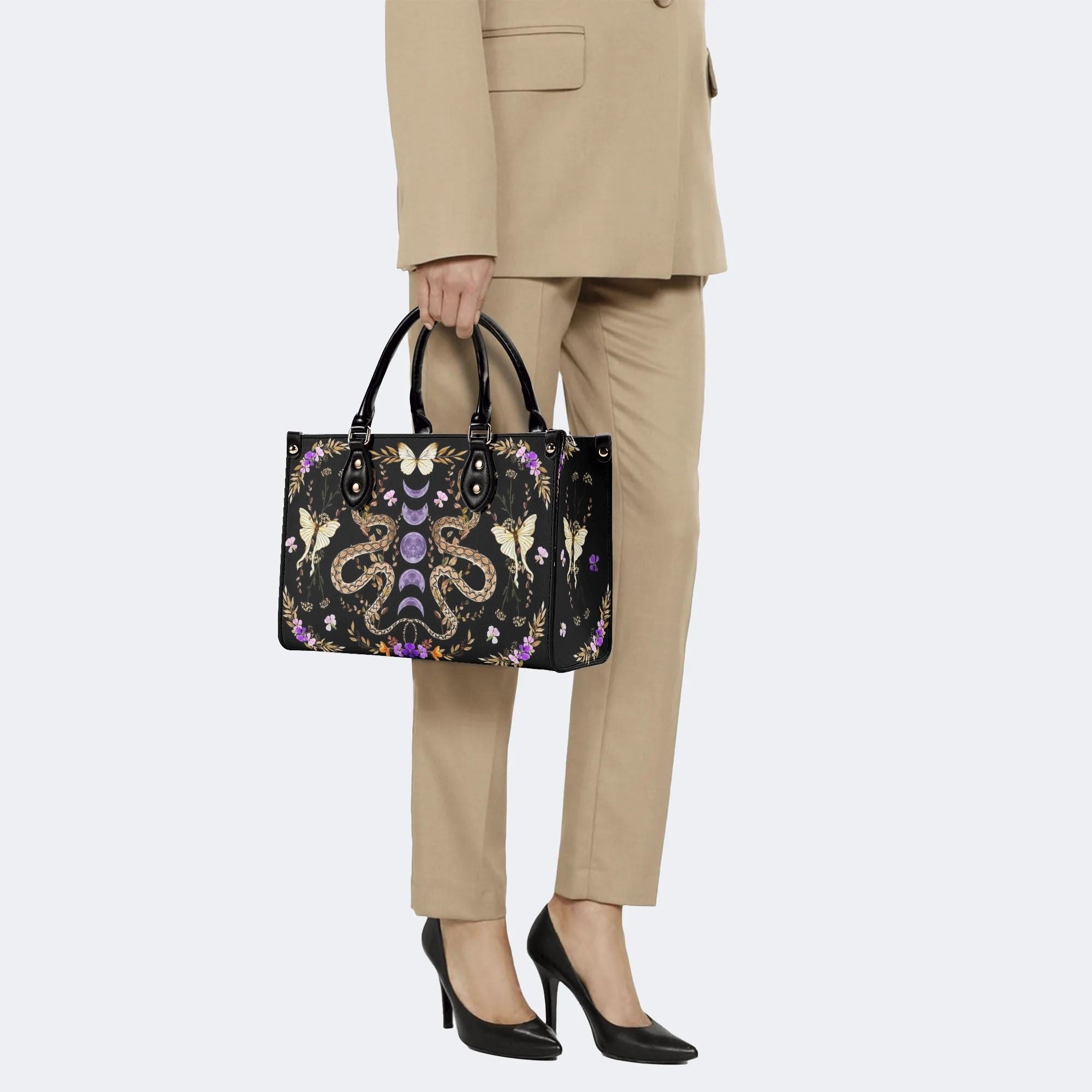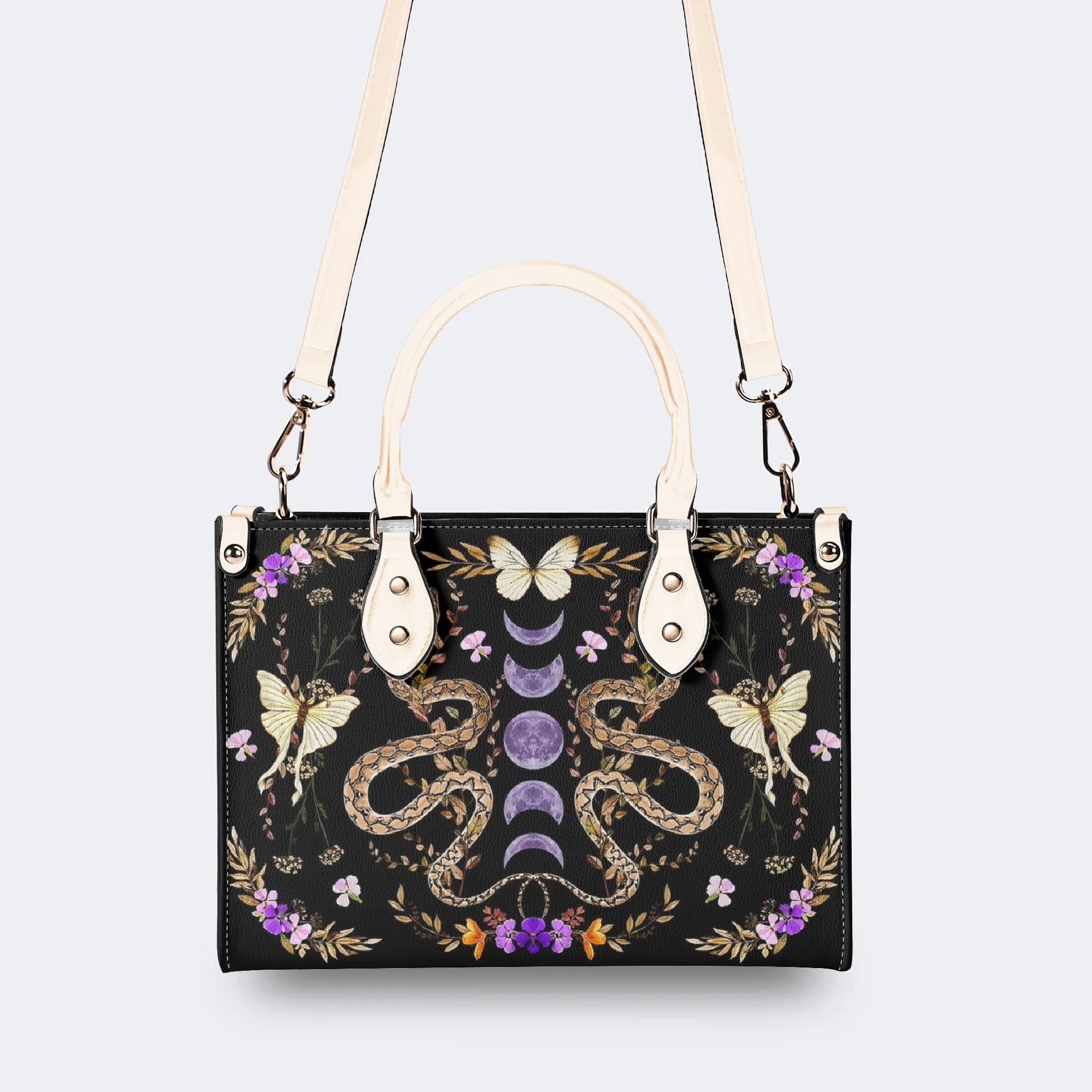 Vintage Moth And Snake Print - Leather HandbagVintage Moth And Snake Print - Leather Handbag