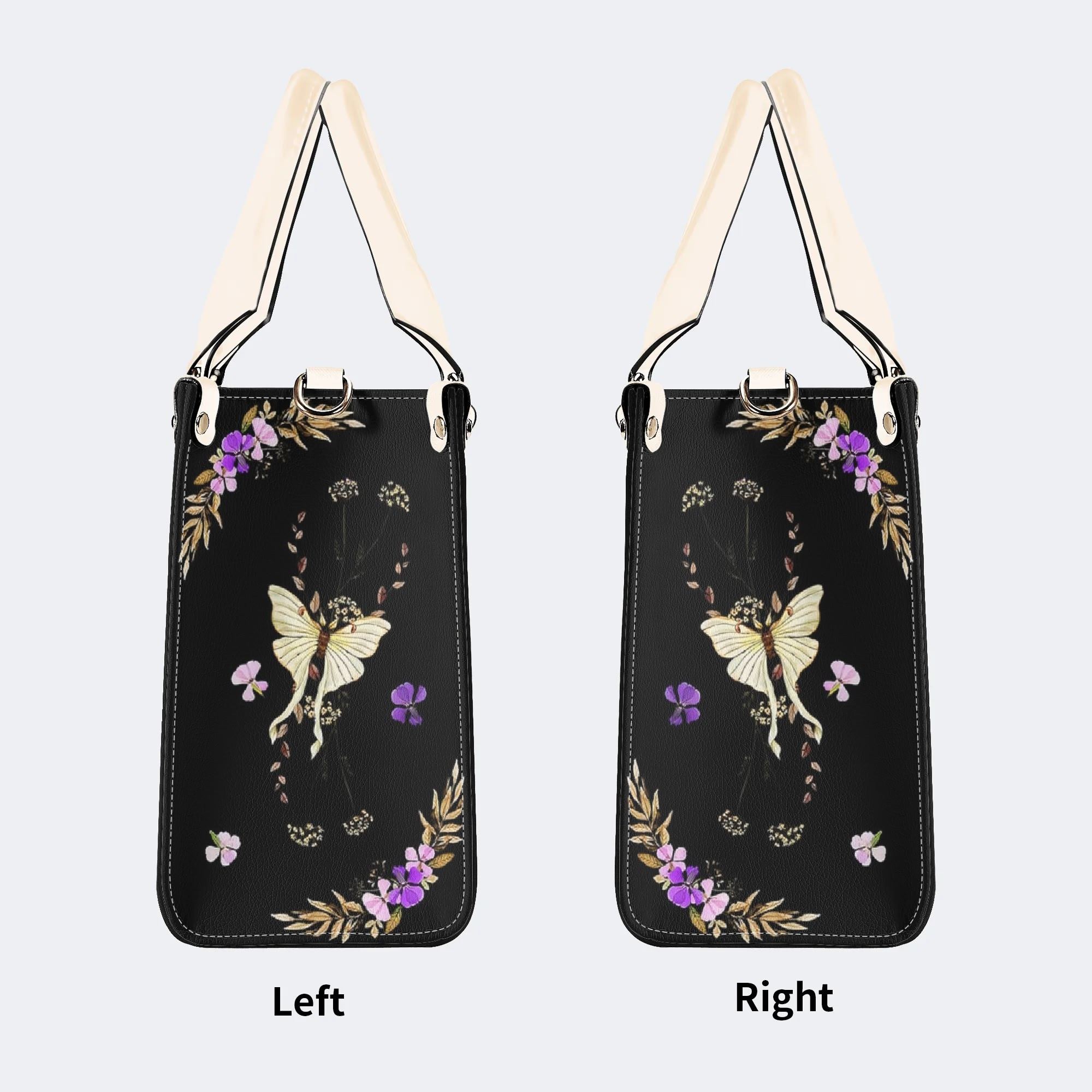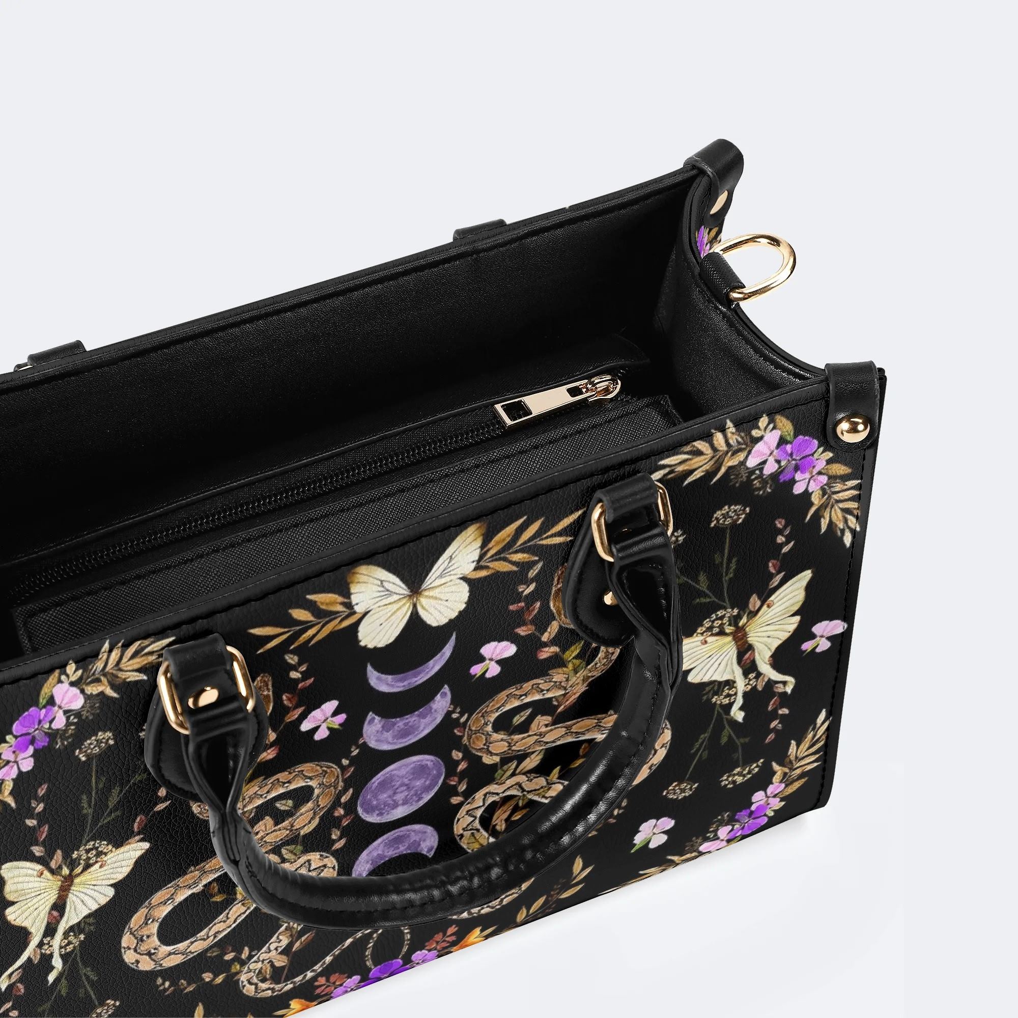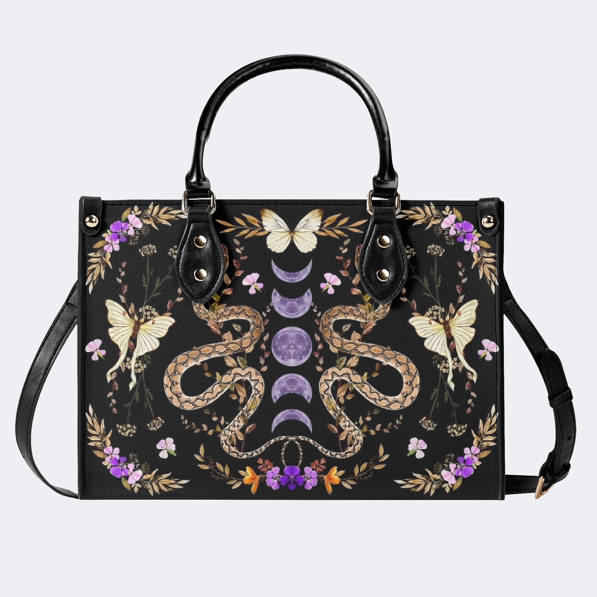 Vintage Moth And Snake Print - Leather HandbagVintage Moth And Snake Print - Leather Handbag