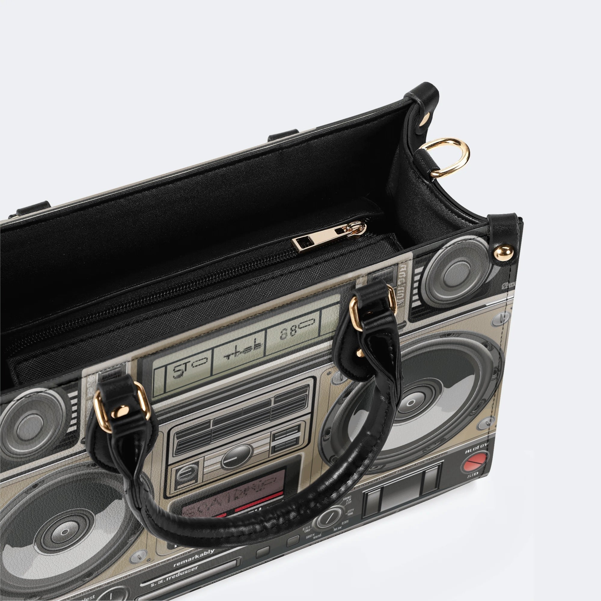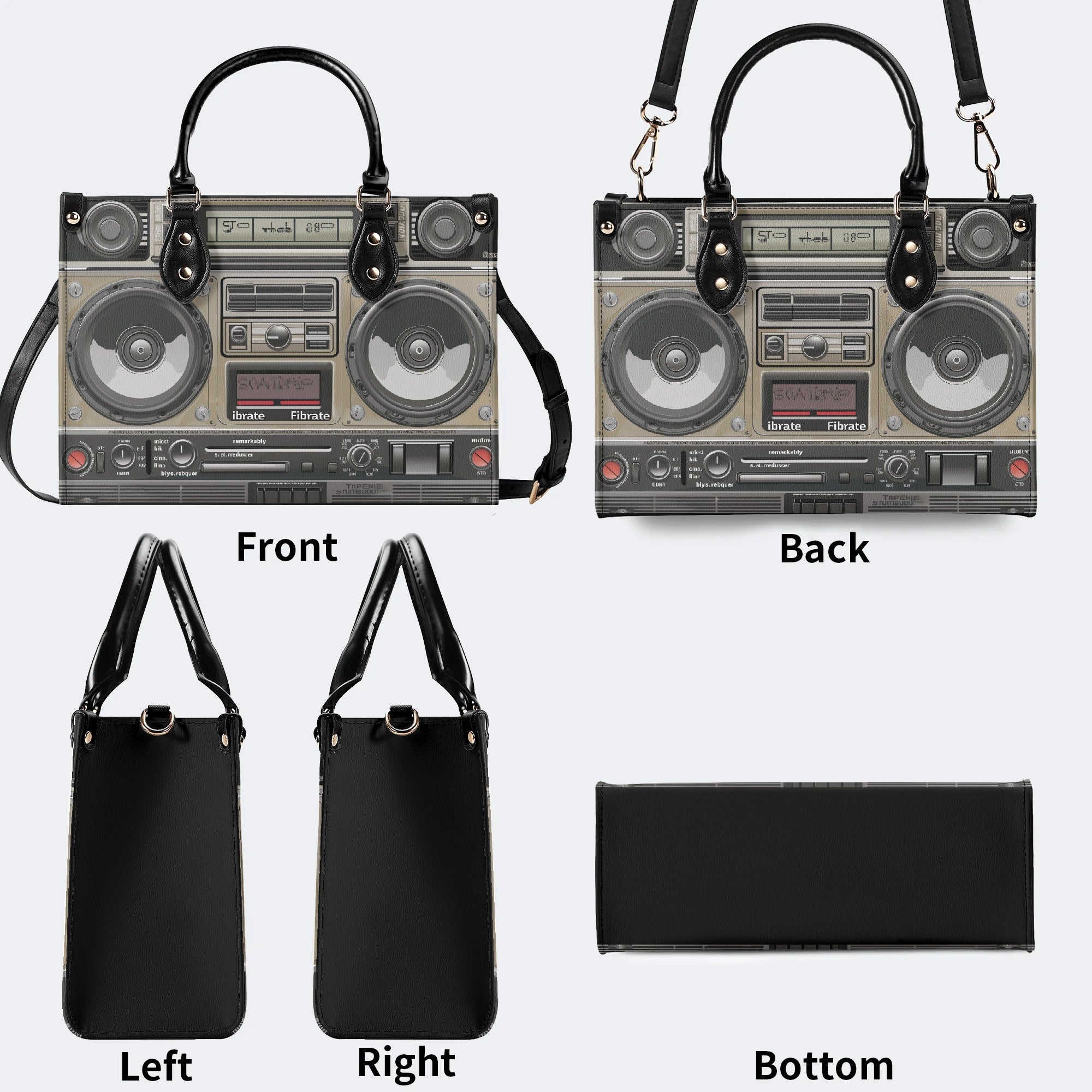 Vintage Radio Print - Leather HandbagVintage Radio Print - Leather Handbag