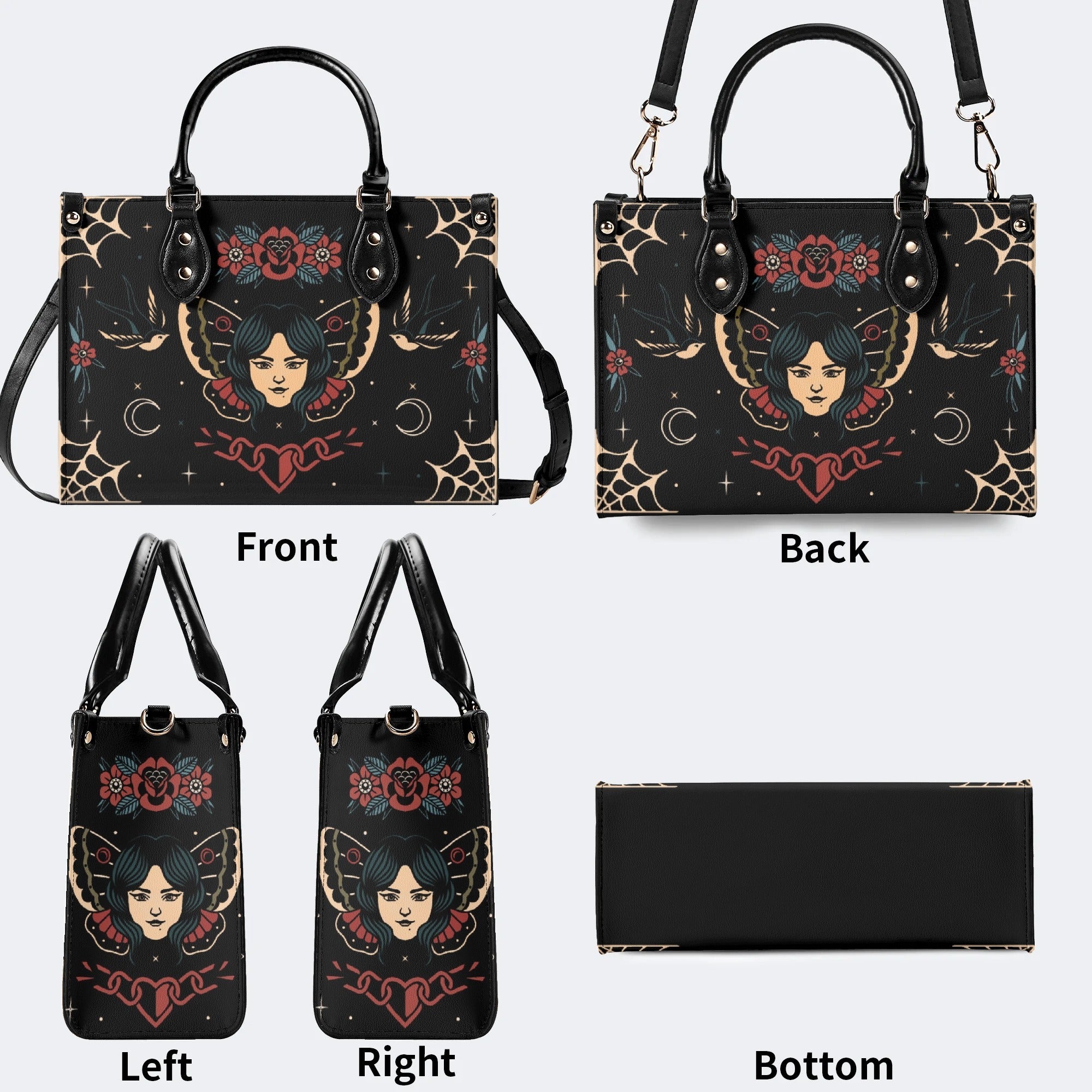 Vintage Tattoo Art Print - Leather HandbagVintage Tattoo Art Print - Leather Handbag