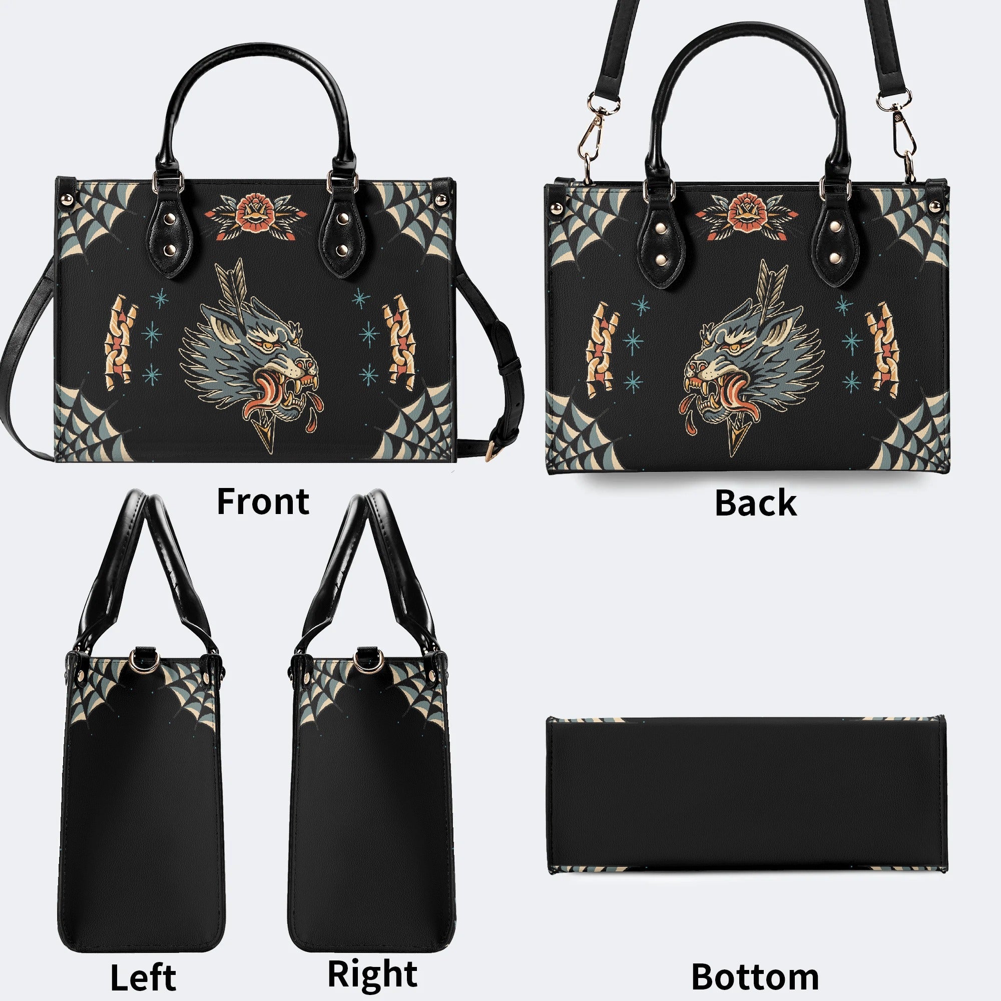 Wolf Vintage Print - Leather Handbag