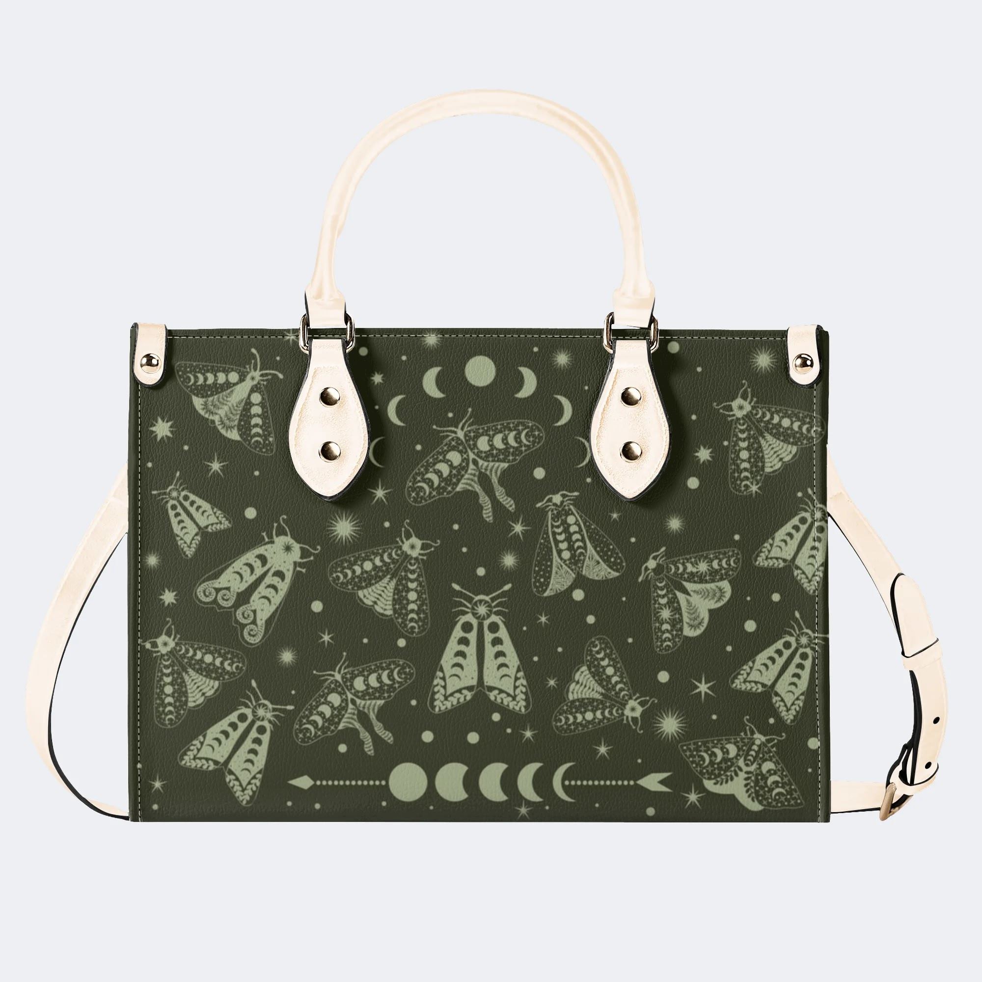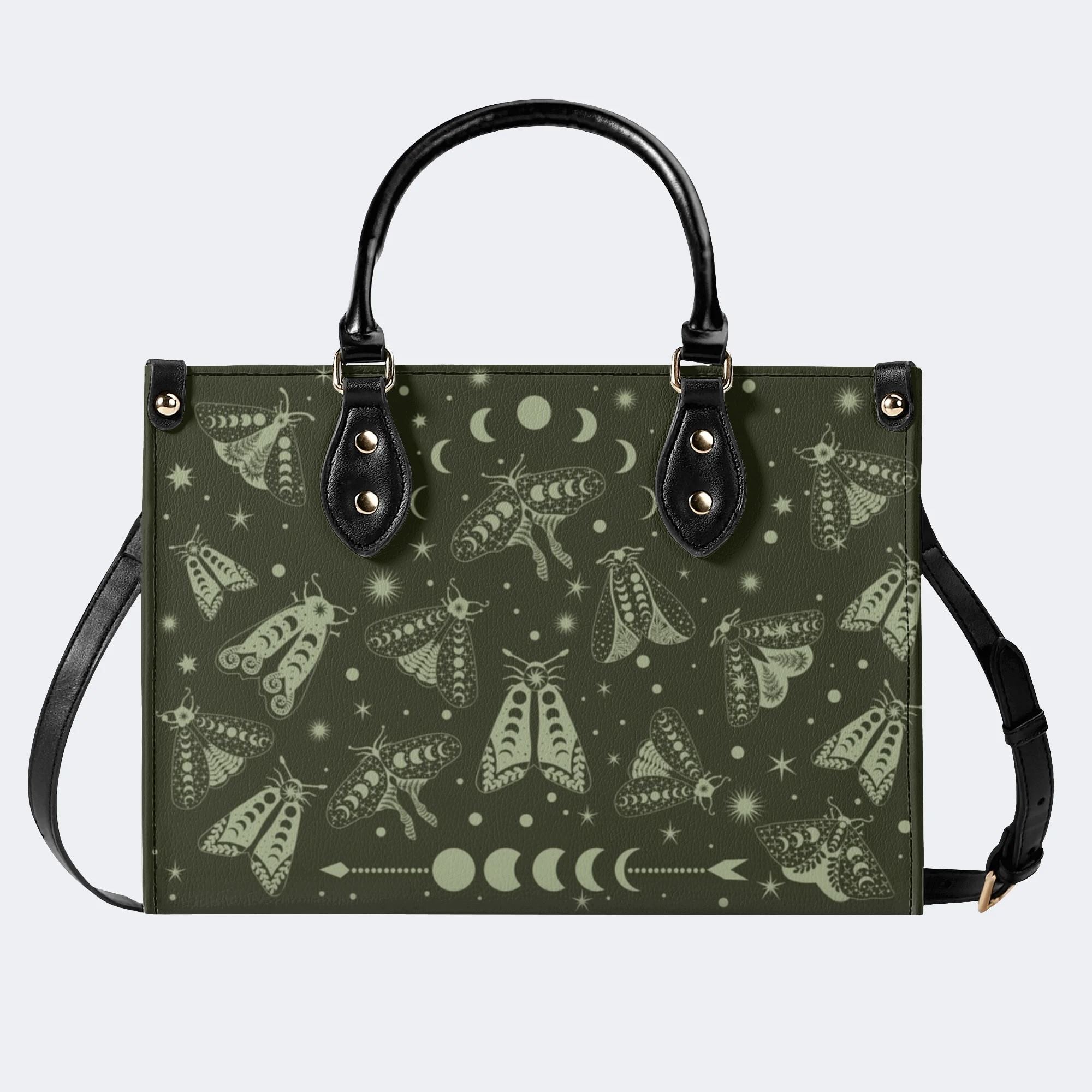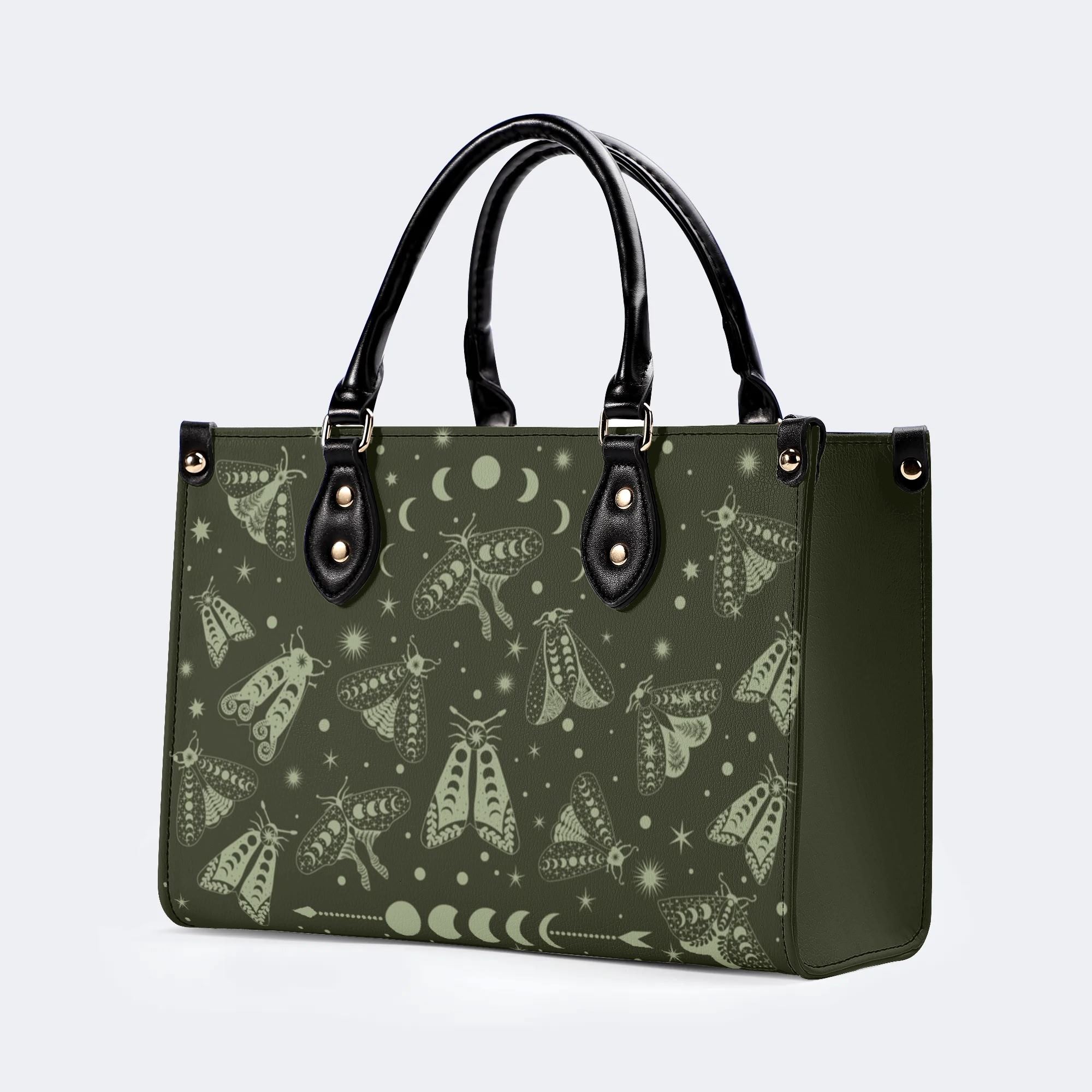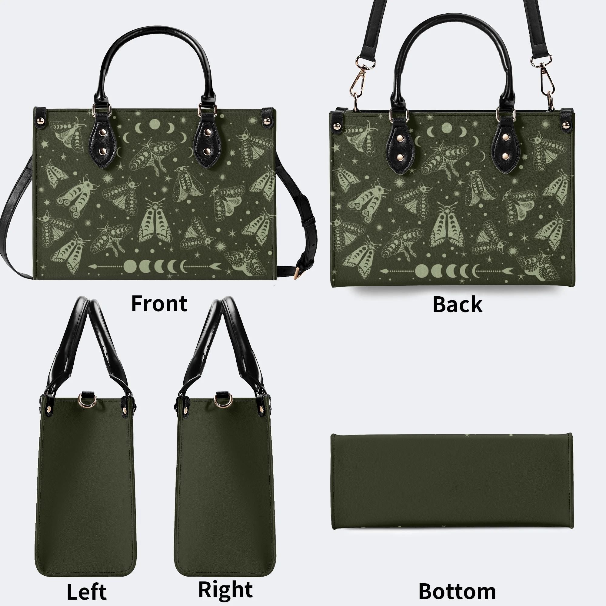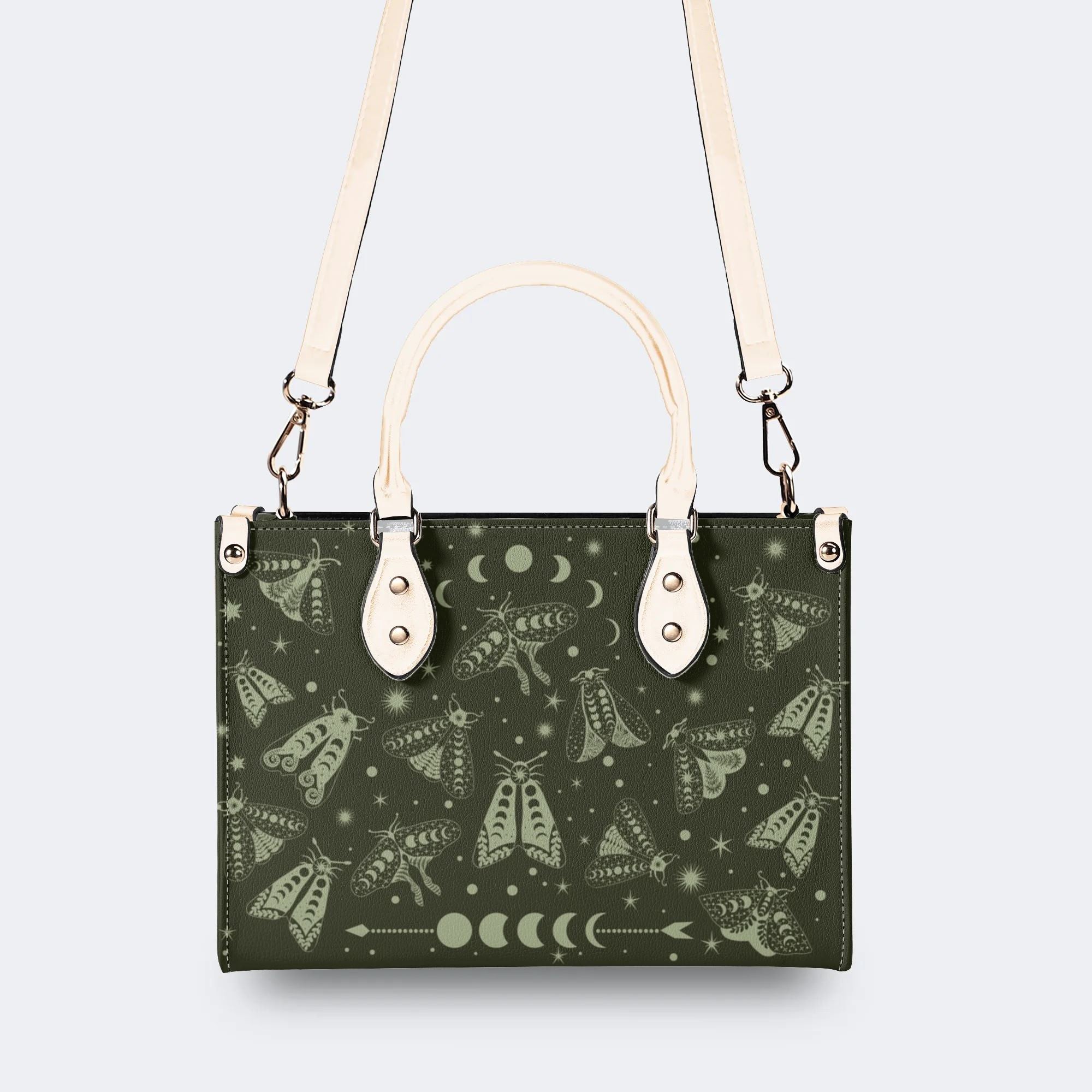 Moths In The Night Sky - Leather HandbagMoths In The Night Sky - Leather Handbag