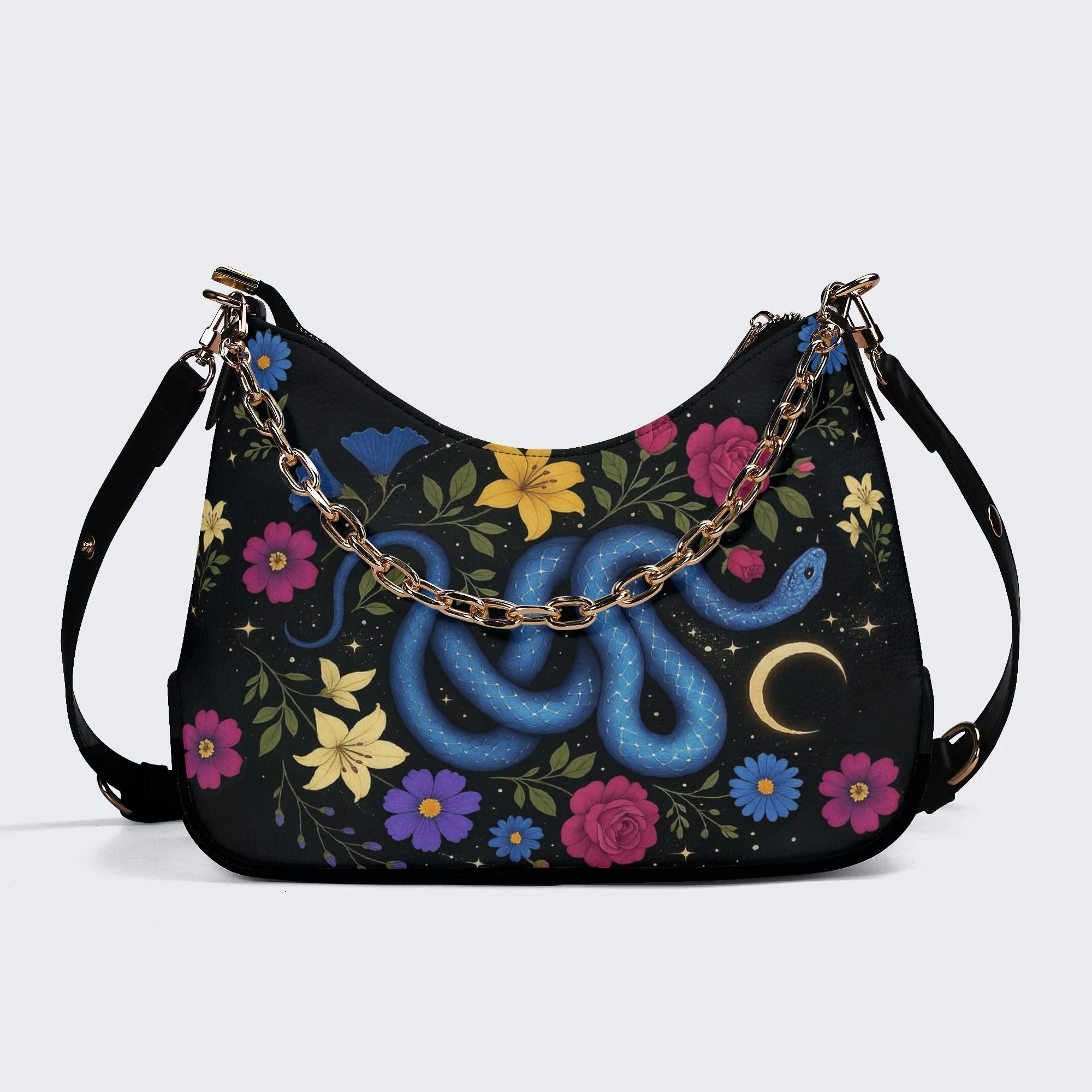 Blue Snake Print - Leather Crossbody BagBlue Snake Print - Leather Crossbody Bag