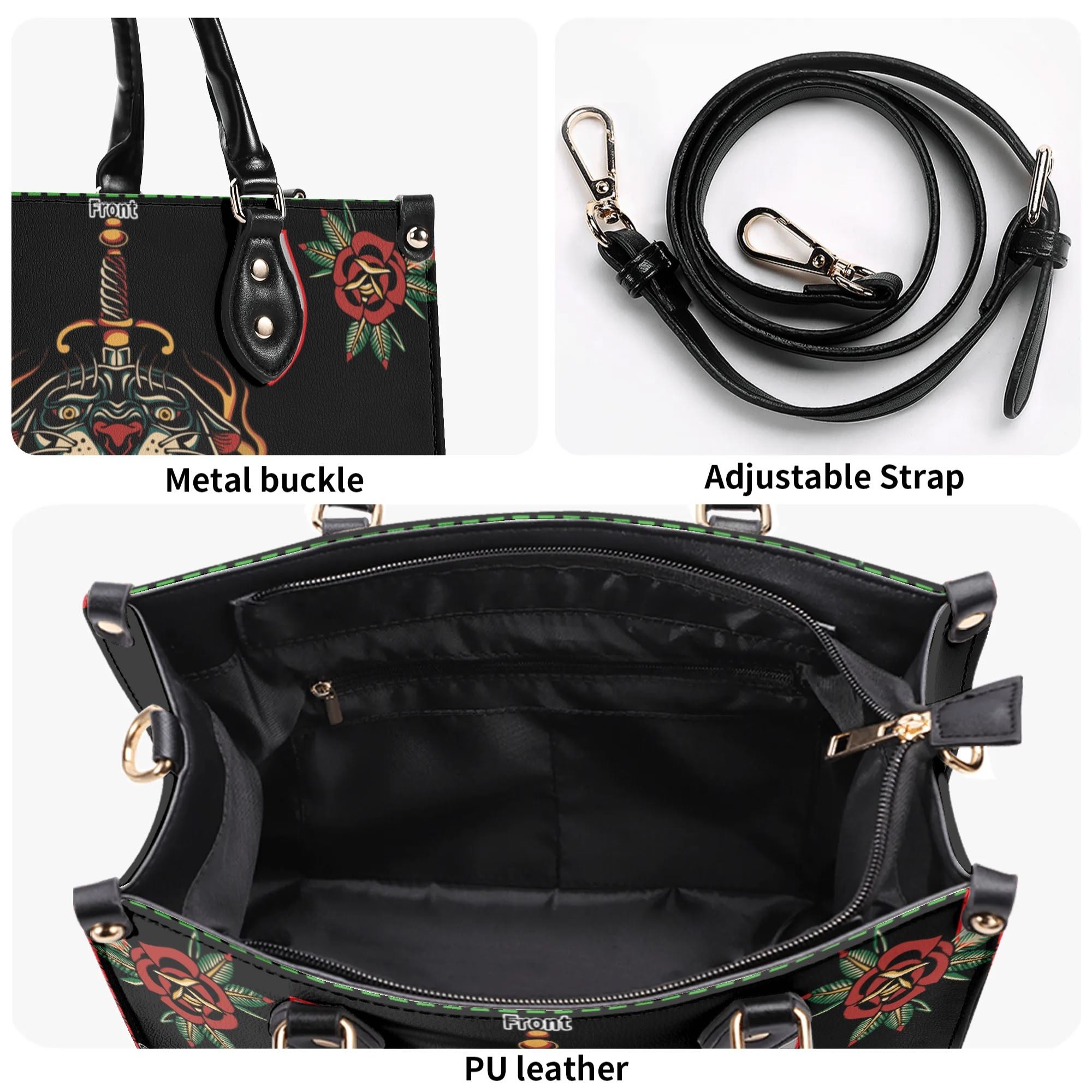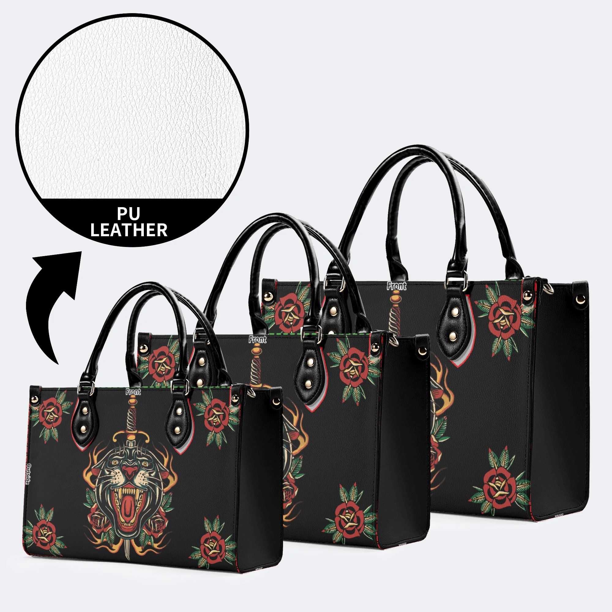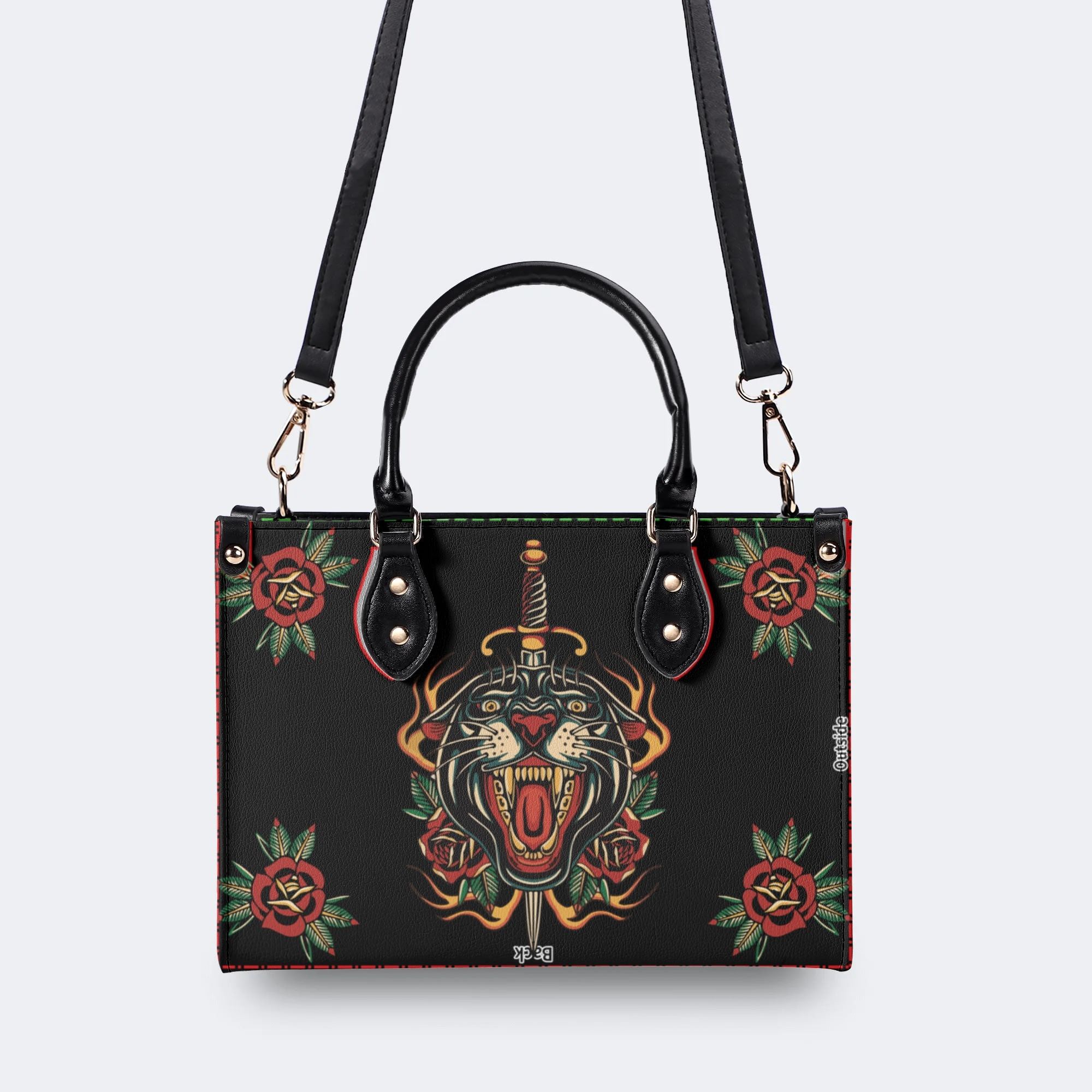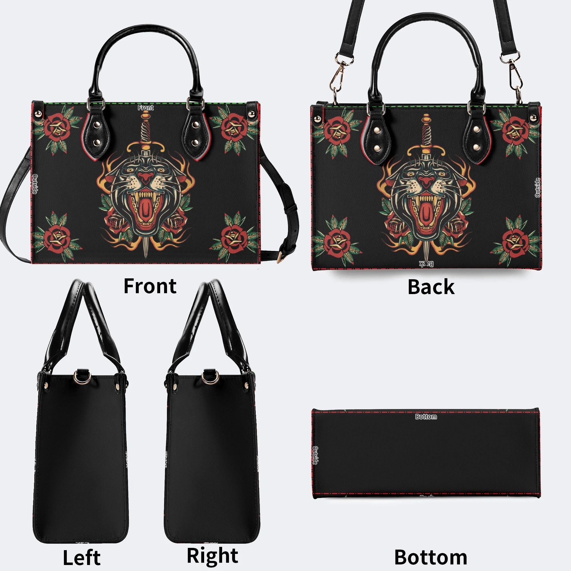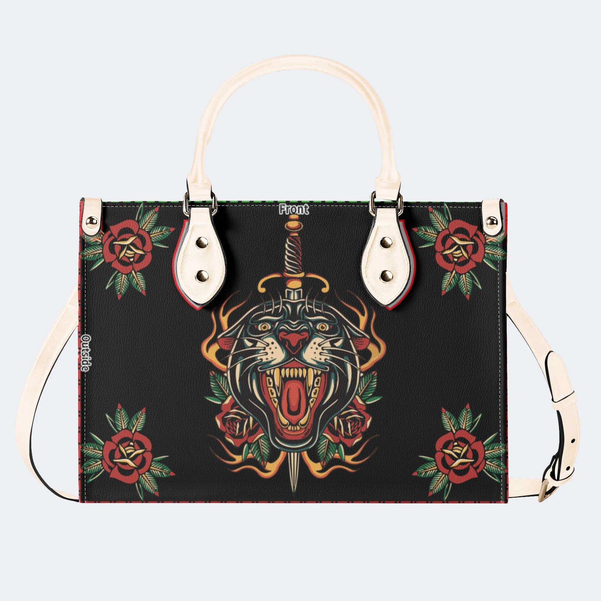Fire Tiger Traditional Tattoo Print - Leather Handbag