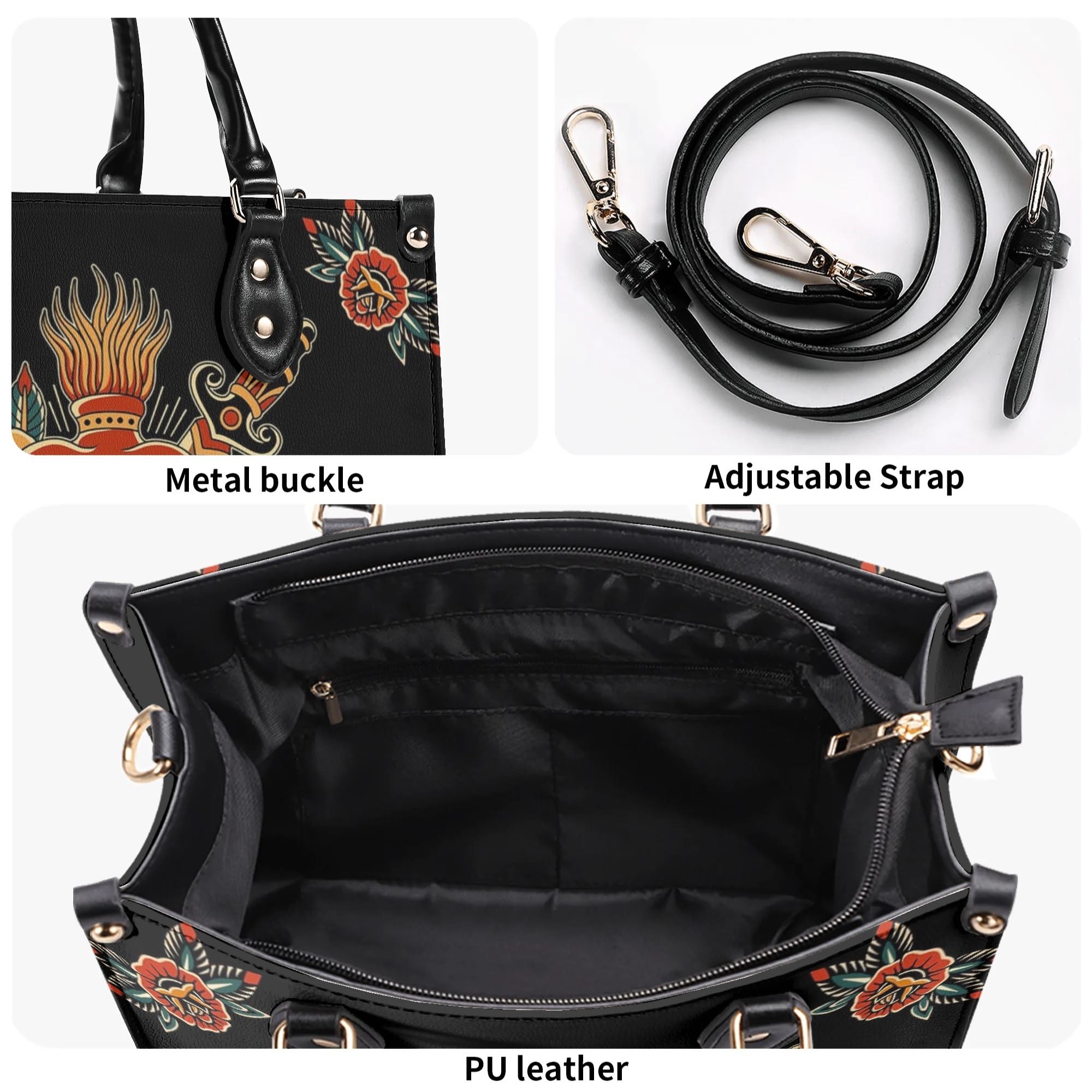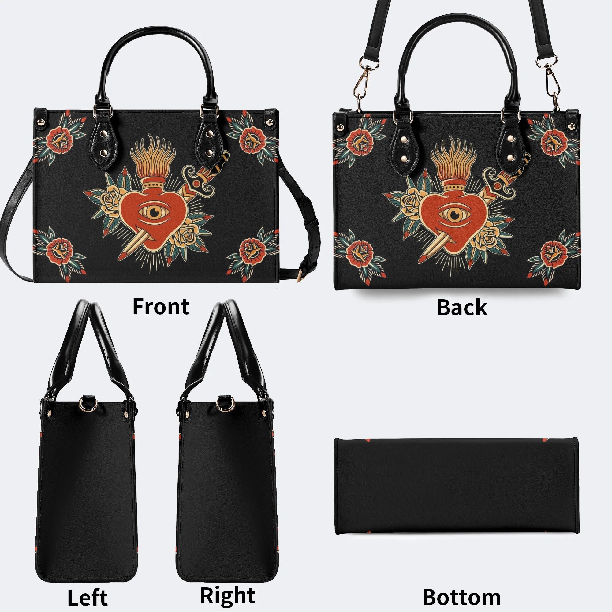 Flaming Heart Art Print - Leather HandbagFlaming Heart Art Print - Leather Handbag