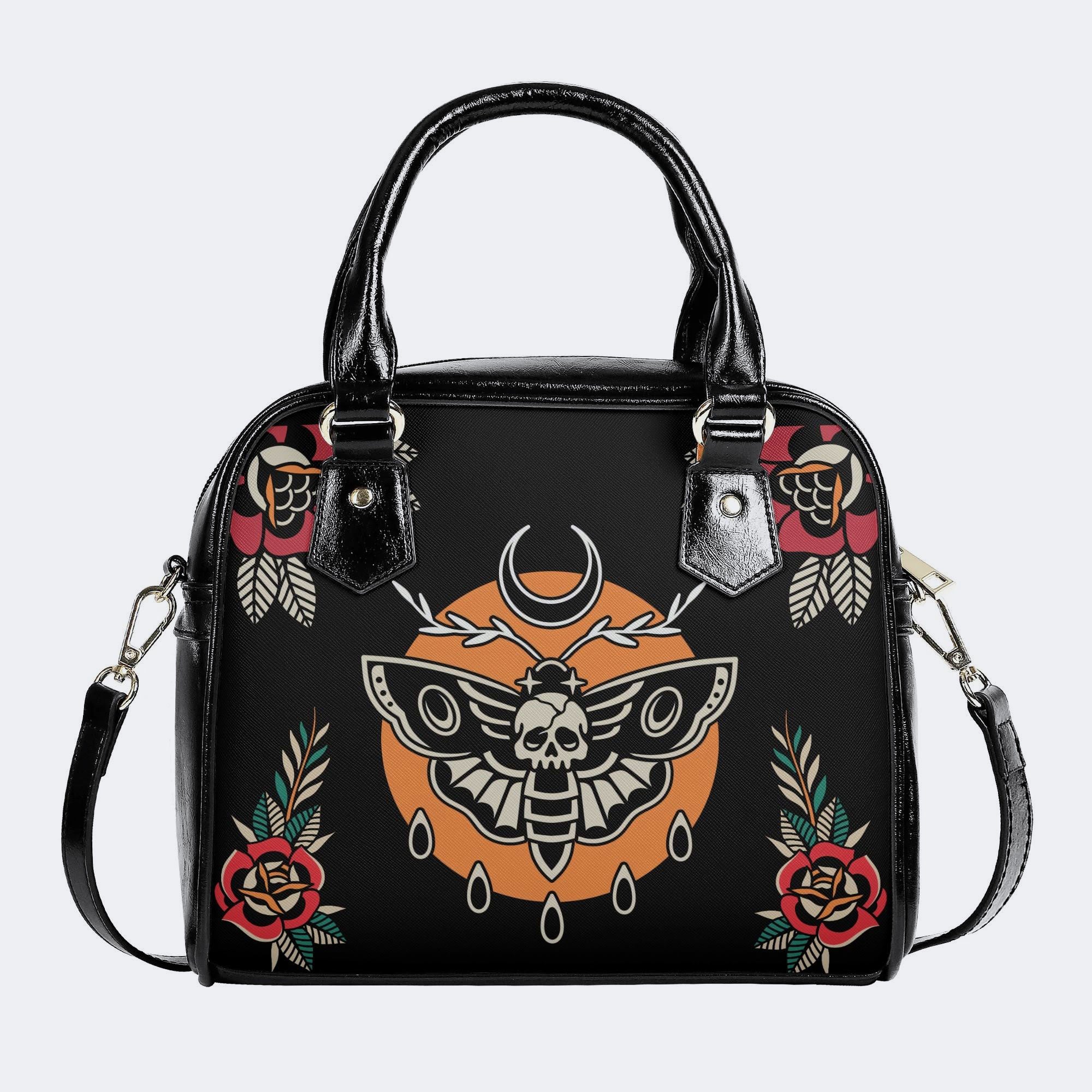 Death Moth Vintage Print - Leather Shoulder HandbagDeath Moth Vintage Print - Leather Shoulder Handbag